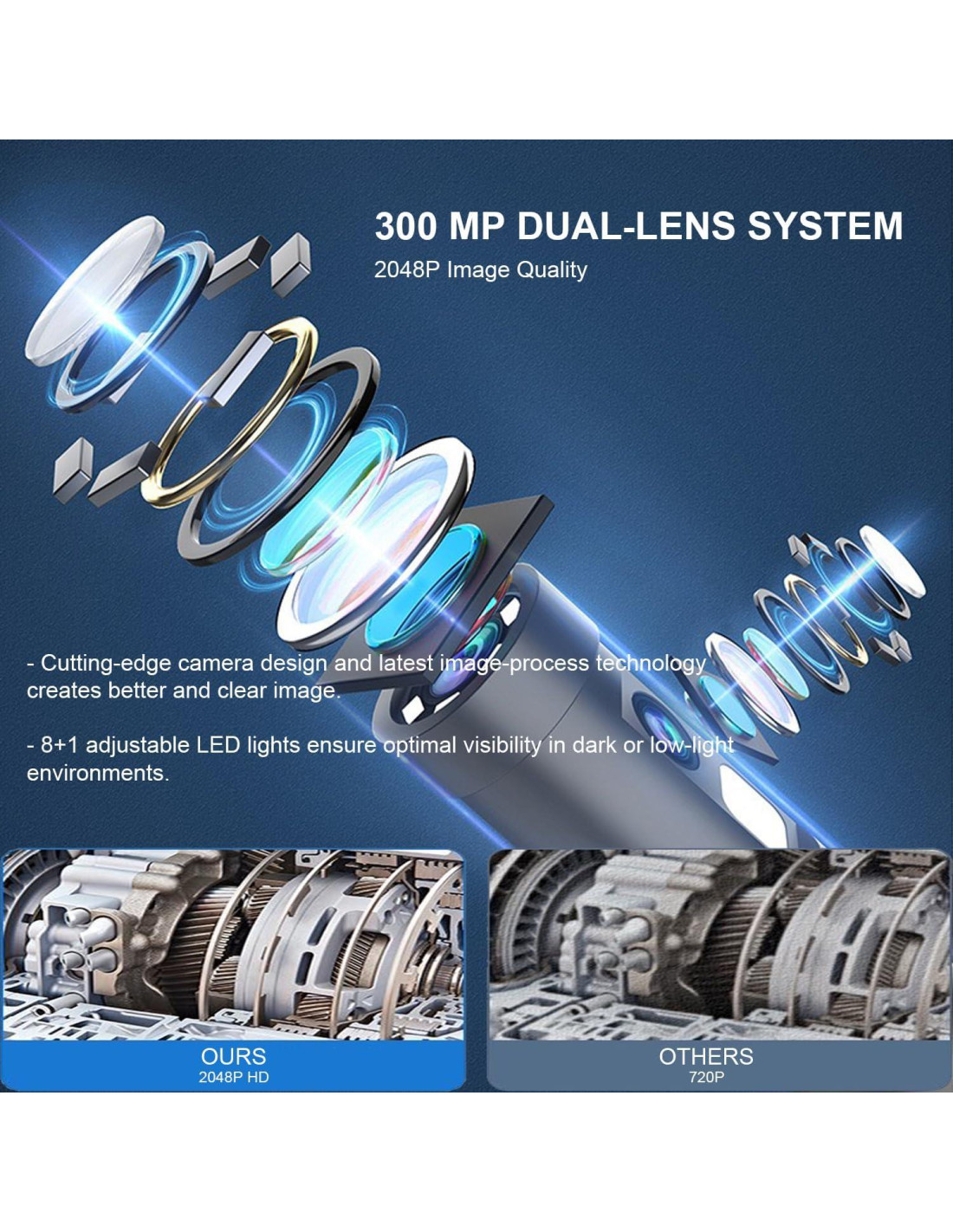 - CÁMARA DE DOBLE LENTE - Nuestra cámara endoscópica cuenta con tecnología de doble lente y un campo de visión óptimo versátil de 3-10 cm. Cambiar el punto de vista en cualquier condición con un clic proporciona una experiencia de uso más fluida.