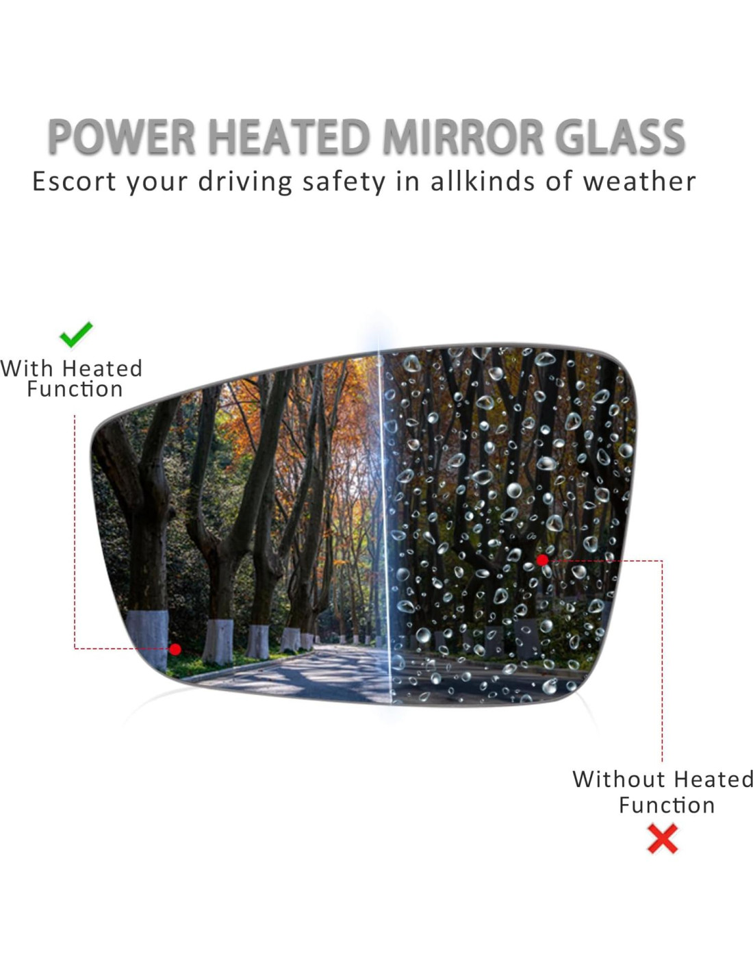 - Material premium: Este vidrio del espejo lateral calefaccionado está construido de plástico ABS y vidrio de alta calidad, duradero, confiable y el vidrio no se empañará.