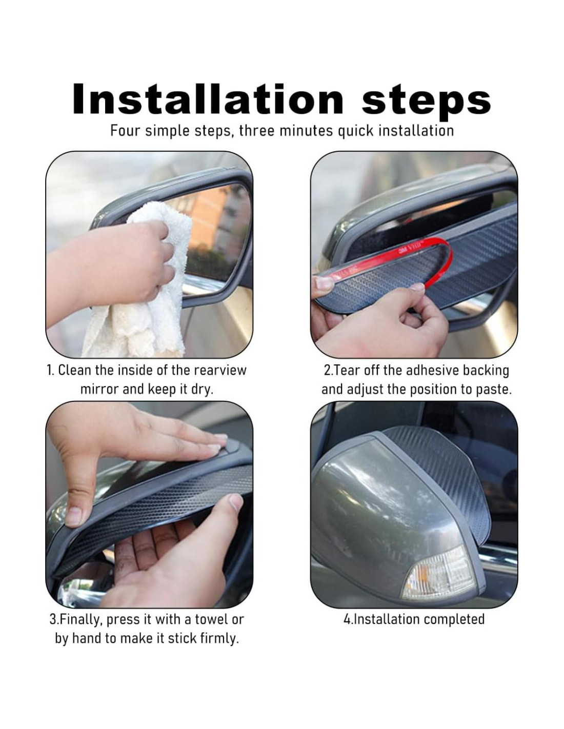 - [Guardián de Lluvia] : Las cejas de la visera de lluvia pueden detener eficazmente la acumulación de lluvia en la superficie del espejo, asegurando visibilidad constante incluso durante lluvias intensas. Al proteger contra las gotas, ayuda a mantener una vista clara del tráfico detrás de ti, mejorando significativamente la seguridad al conducir.