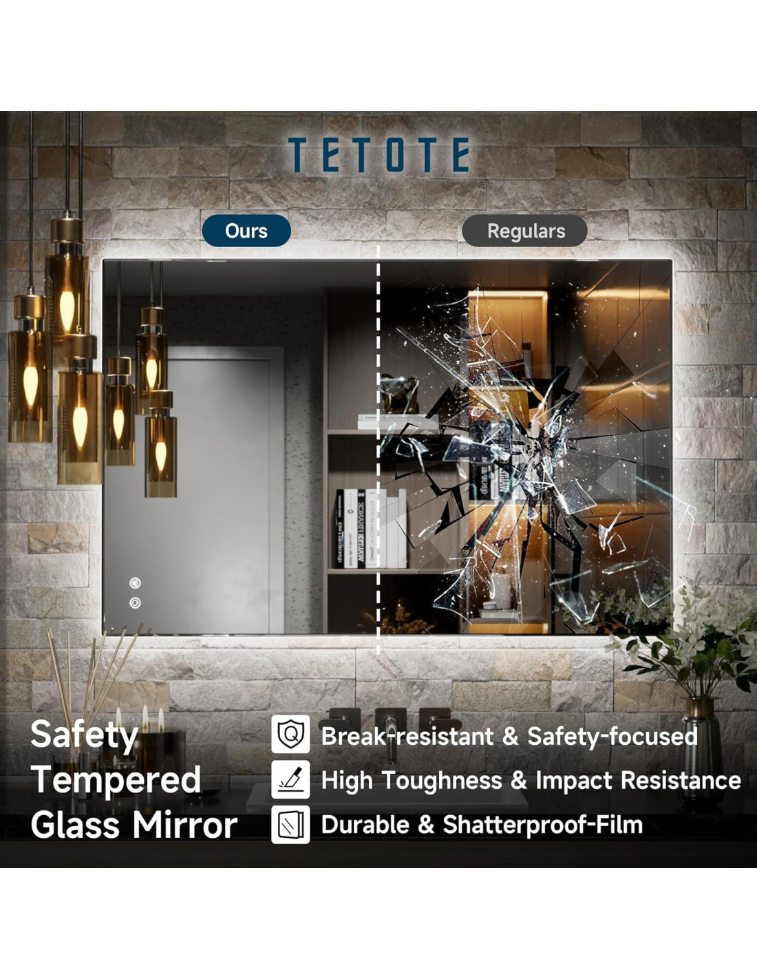 - [Embalaje confiable e instalación fácil] - El espejo TETOTE está asegurado por una caja de espuma reforzada con protección adicional. Incluye enchufe y tornillos. Instalado con enchufe o cableado, horizontal o vertical, todo a tu elección.