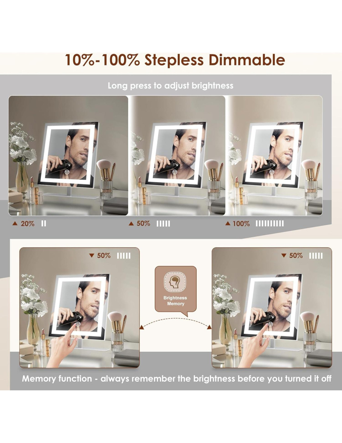 - ¡Ajusta tu iluminación sin esfuerzo con un solo toque! Presenta 3 temperaturas de color (3000K, 4000K, 6000K) y capacidades de atenuación (10%-100%), permitiéndote ver tu maquillaje en detalle realista. Disfruta de una vista completa de tu rostro para una aplicación perfecta.