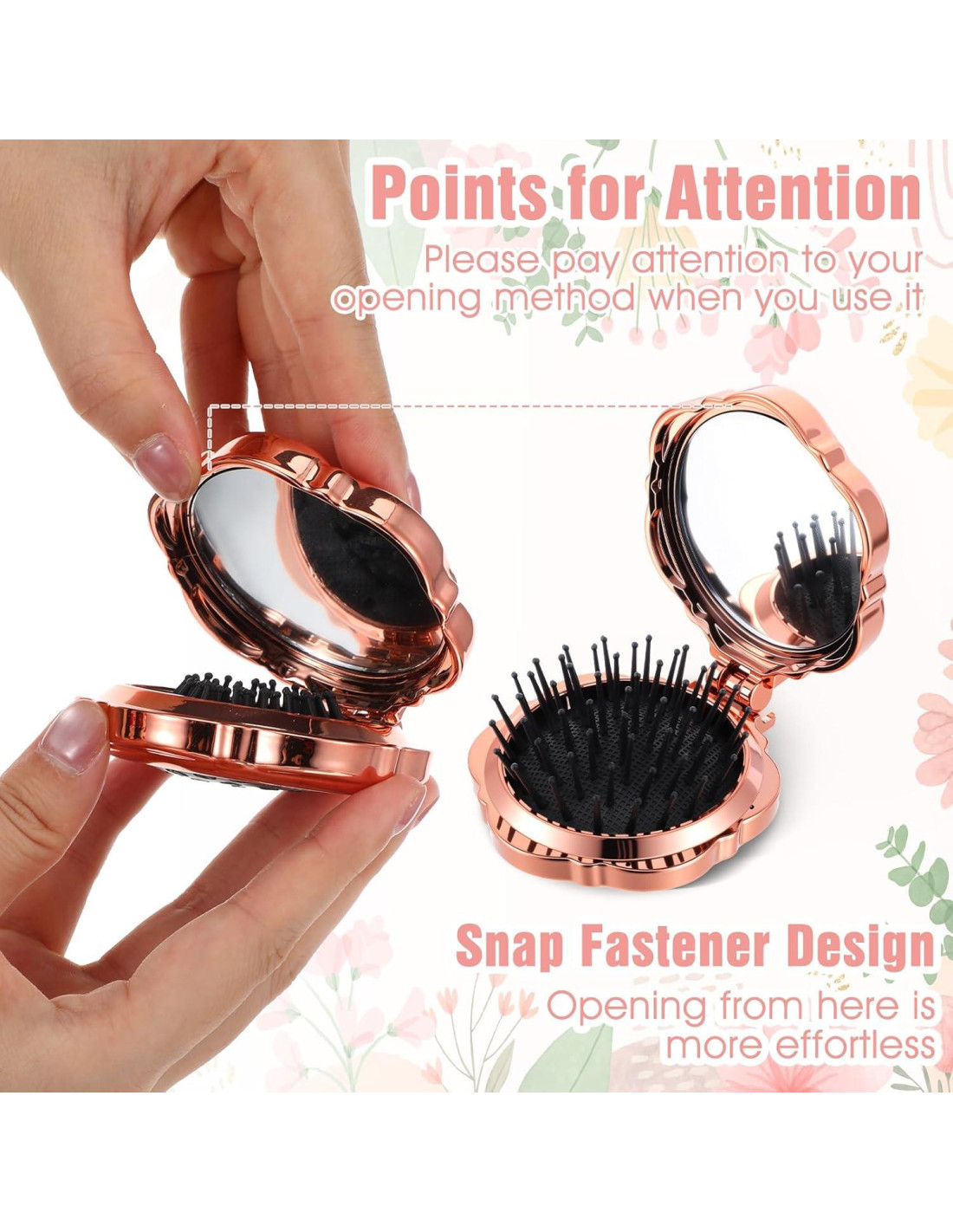 - Diseño Elegante: Este cepillo de viaje para mujeres con espejo presenta un exquisito diseño en forma de rosa y una superficie con recubrimiento UV para un acabado metálico y espejado. Es duradero y resistente al desgaste, por lo que no te decepcionará en el momento en que lo recibas