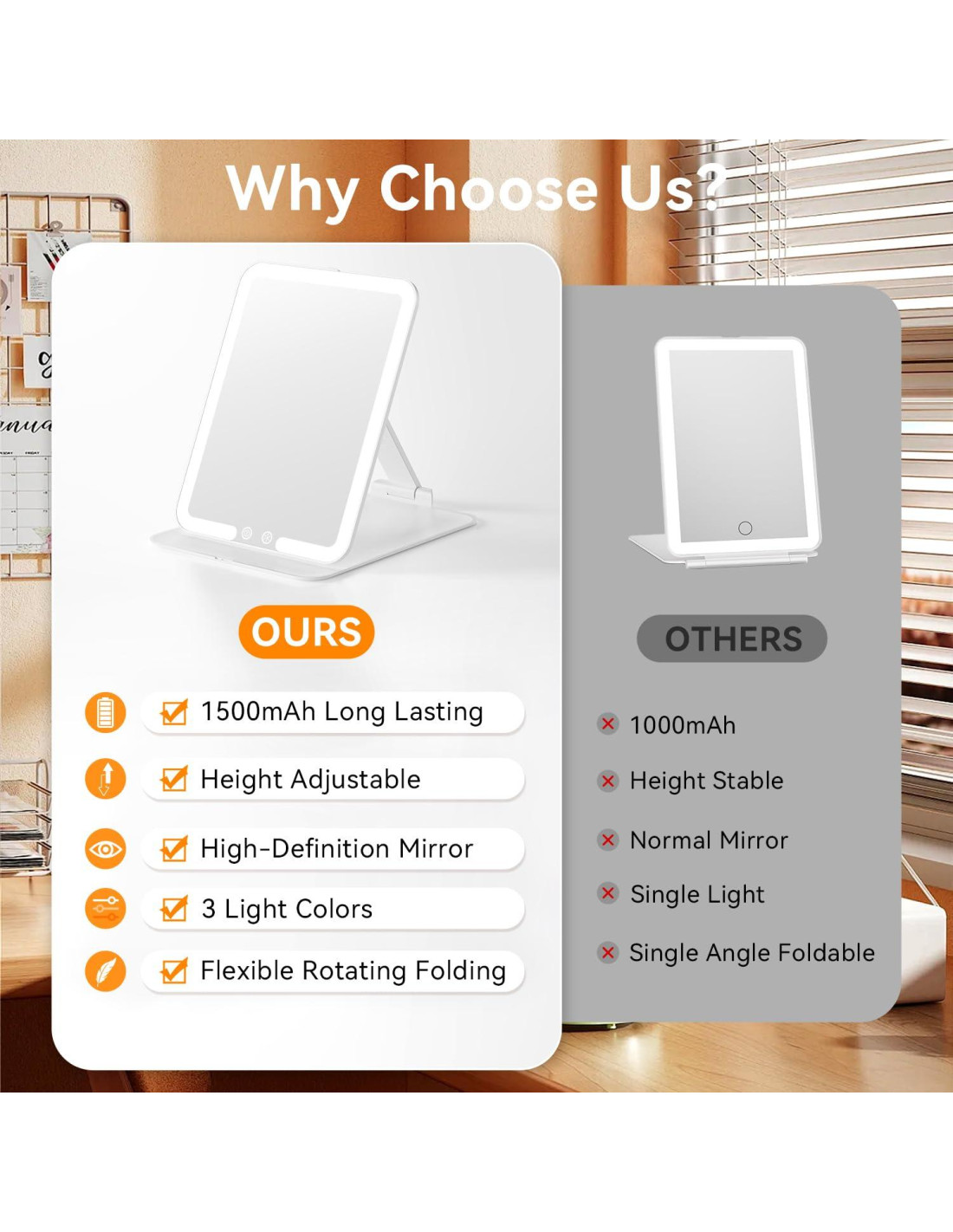 - [Alta Calidad y Duradero] Fabricado con materiales de ABS y vidrio de primera calidad, este espejo ofrece una reflexión sin distorsiones, asegurando que veas cada detalle claramente. Es un excelente regalo para mujeres en ocasiones especiales como cumpleaños, Navidad o el Día de la Madre