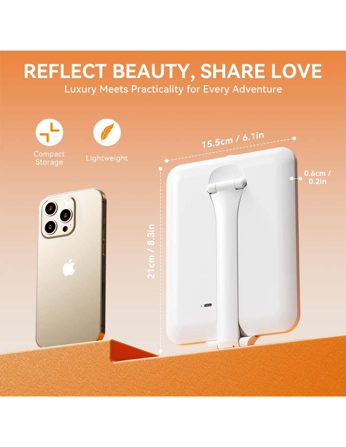 - [Diseño Compacto y Ligero] Midiendo solo 21.1*15.5 centímetros y 0.5 centímetros de grosor, este espejo de tocador portátil es ultra delgado y ligero, perfecto para deslizarlo en tu bolsa de viaje o equipaje