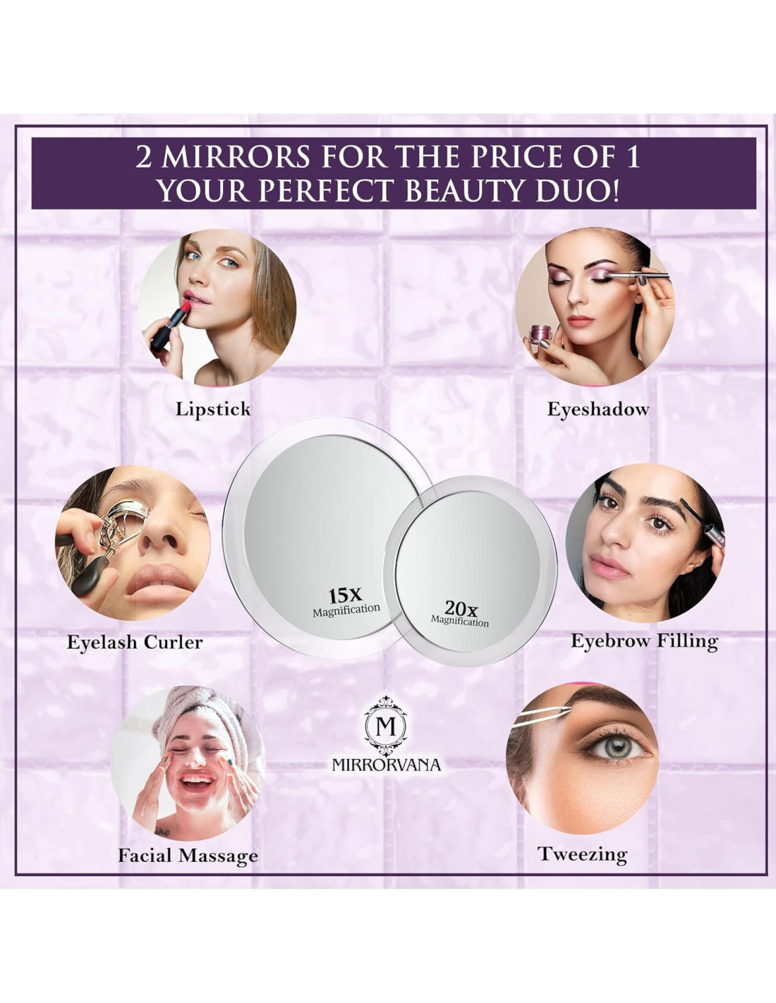 - SE VENDEN COMO UN JUEGO: Incluye un espejo de 15 cm de ancho con aumento 15X y un espejo de 10 cm de ancho con aumento 20X