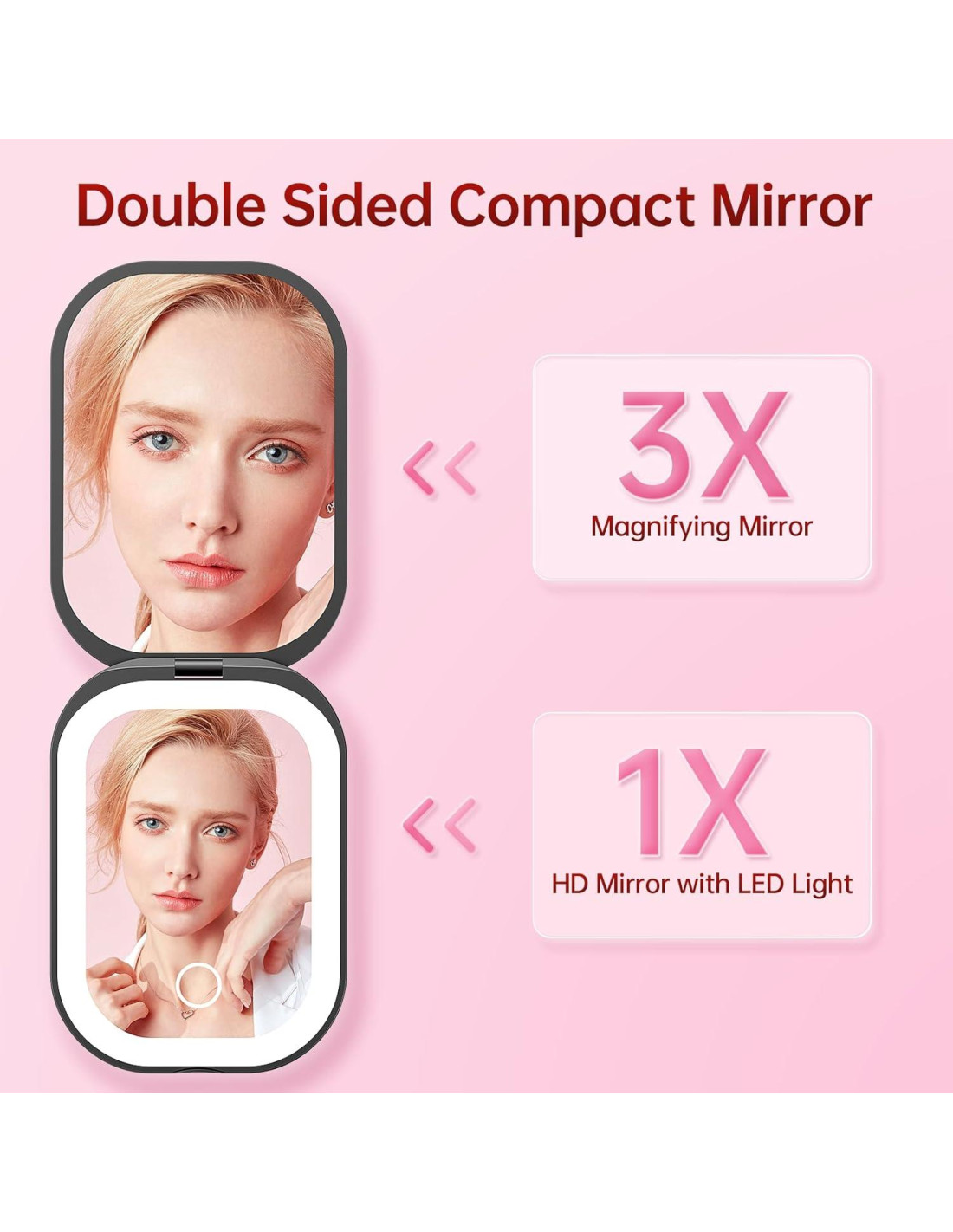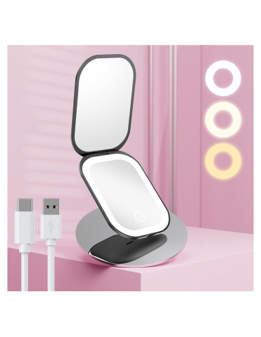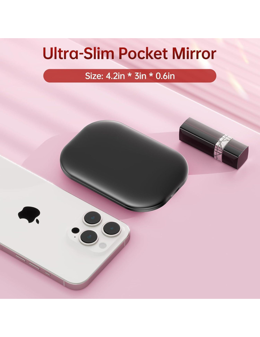 - Espejo Compacto Portátil y Recargable Midiendo 4.2*3in (10.67*7.62cm) y solo 0.6in (1.52cm) de grosor, este espejo ultra delgado es conveniente para llevar y cabe perfectamente en tu bolso, cartera o bolsillo. Su diseño recargable tipo C no solo ahorra el costo de reemplazo de baterías, sino que también reduce el desperdicio ambiental