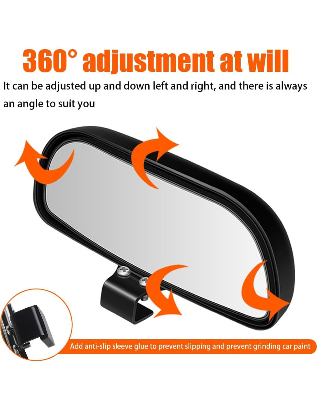 - Ángulo de Visión Ajustable: Al presionar el espejo, puedes ajustar el ángulo de visión hacia arriba y hacia abajo, izquierda y derecha para obtener la mejor vista que necesites. Ya sea que el coche esté retrocediendo, estacionando, girando o cambiando de carril, puede desempeñar una buena función auxiliar, muy práctico, un buen regalo para tus seres queridos y amigos.