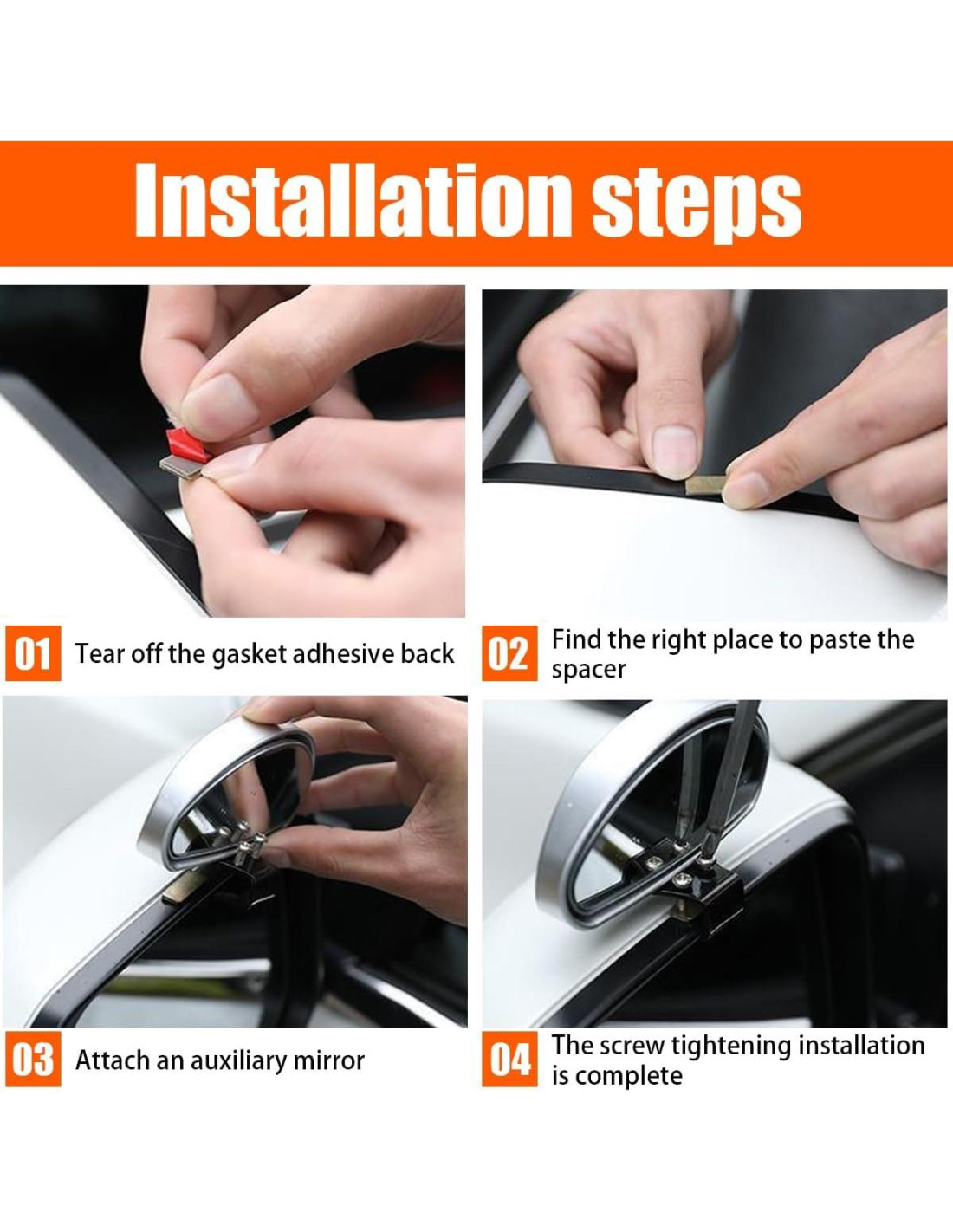 - Fácil de Instalar: Limpia primero la ubicación de montaje, luego pega la cinta en el espejo retrovisor original de tu coche. Adjunta el producto a la cinta con tornillos, aprieta los tornillos y la instalación está completa. No es necesario perforar agujeros y no dañará el espejo retrovisor original del coche, hay cinta como base para desempeñar un papel de amortiguación.