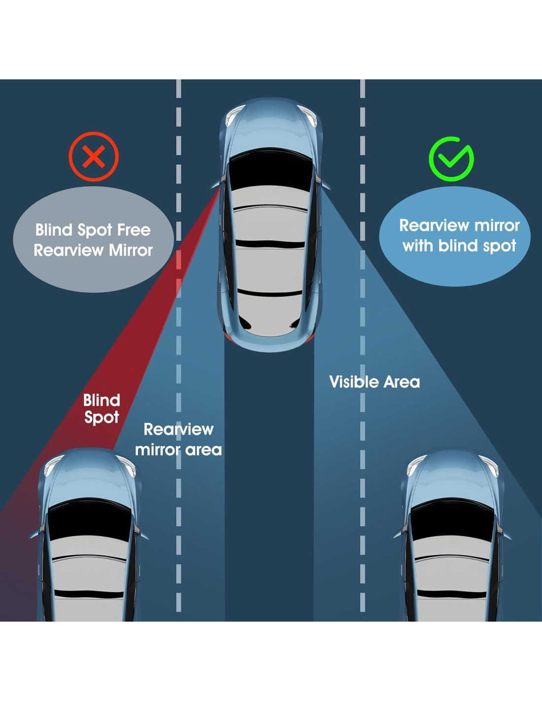 - Amplio Ángulo Sin Marco: El diseño sin marco maximiza tu campo de visión, mientras que la forma convexa del espejo proporciona una vista de ángulo amplio, eliminando esos molestos puntos ciegos
