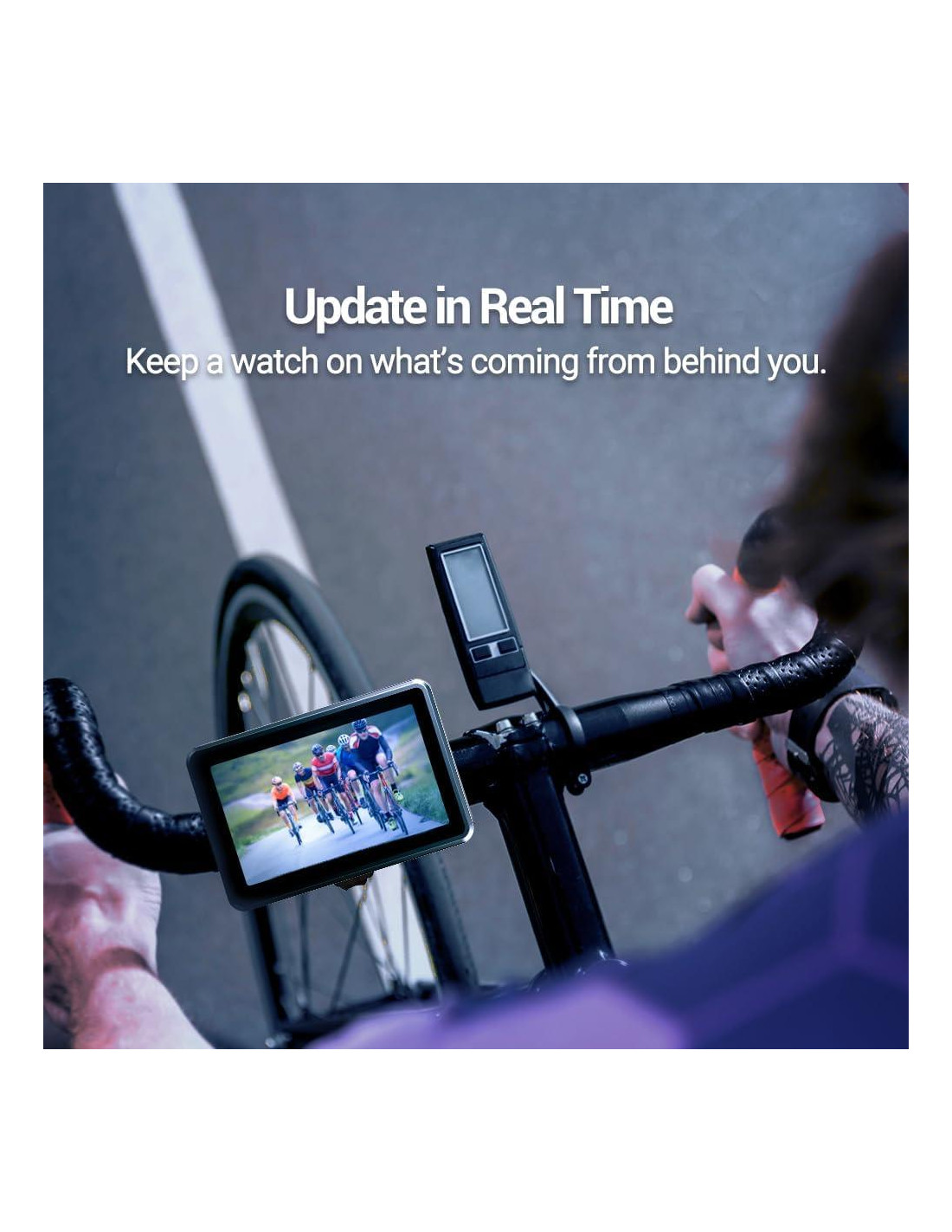 - [Mantente Seguro] El monitor del espejo de bicicleta se actualiza en tiempo real y te ayuda a ver vehículos y otras bicicletas que se acercan desde atrás y te libera de estar constantemente mirando por encima del hombro para ver qué hay detrás de ti. Esto hace que la experiencia sea más placentera y despreocupada.