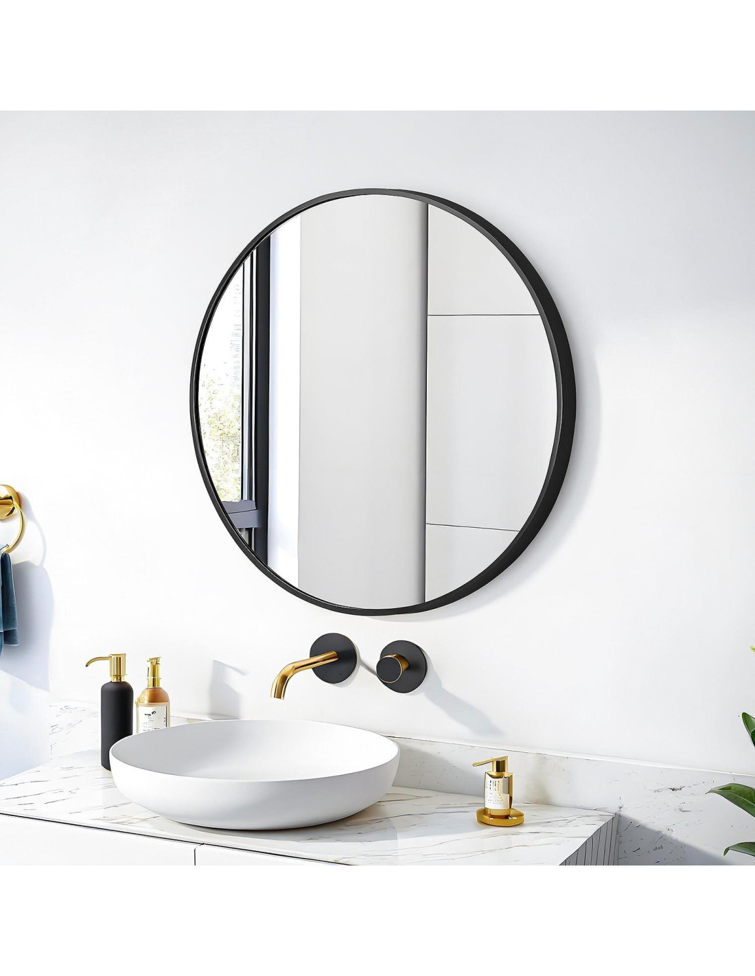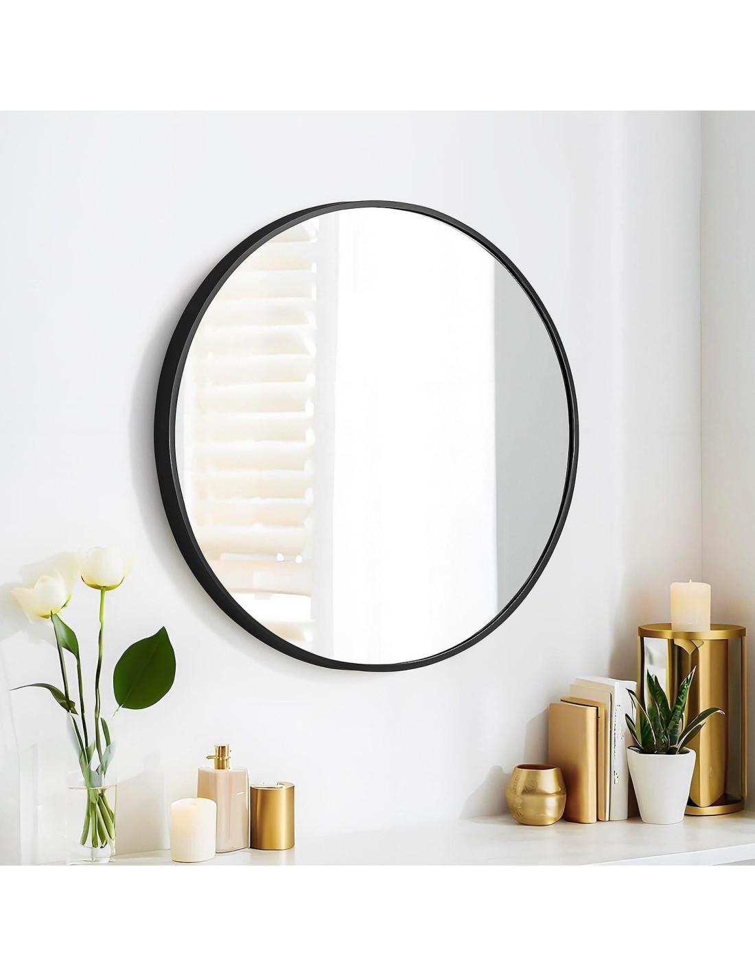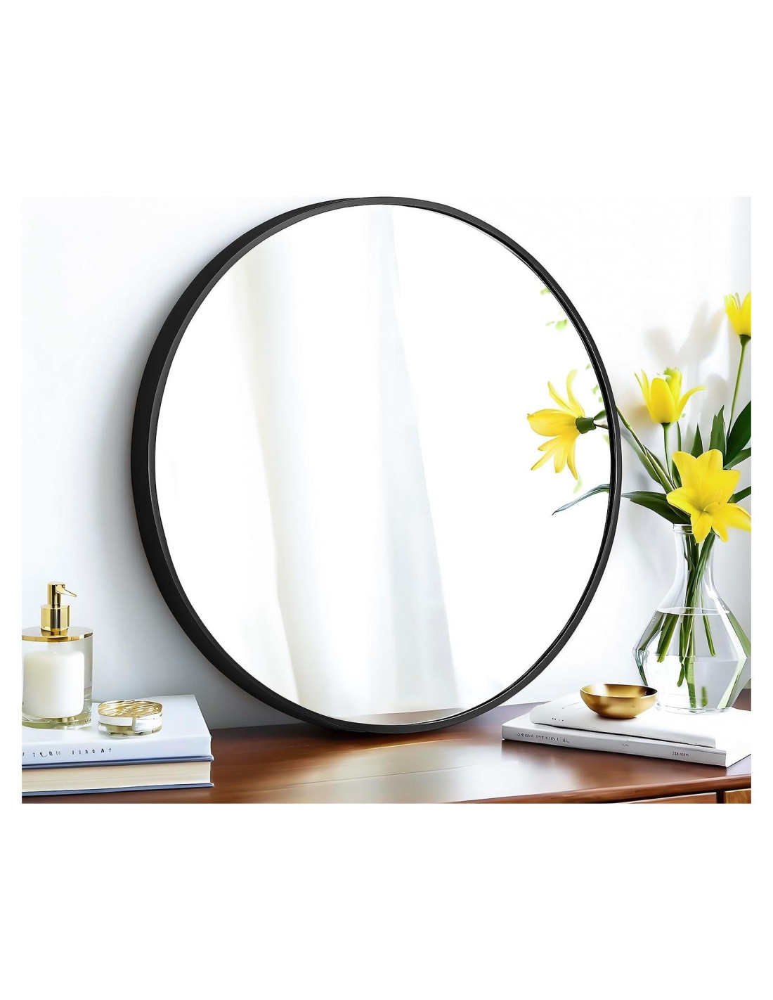 Las líneas clásicas limpias y circulares de este espejo redondo acentúan cualquier habitación o pasillo en estilo moderno. Presentando un marco de metal ultra delgado en perfil profundo, añades profundidad a una habitación y le das más vida. Una mejor opción para tu entrada, dormitorio, decoración de pared de sala de estar o sobre una cómoda. El marco de acero inoxidable es a prueba de óxido, impermeable, a prueba de golpes, mayor estabilidad y una vida útil más larga. Vidrio de alta calidad, que protege la superficie del espejo contra la deformación, brindándote así una reflexión perfecta. Ha sido probado y aprobado sobre un lavabo de baño. Instala los tornillos de expansión (contenidos en el paquete) en dos agujeros perforados, y luego cuelga el espejo en los tornillos. Asegúrate de que el espejo esté montado correctamente para garantizar que sea seguro de usar.