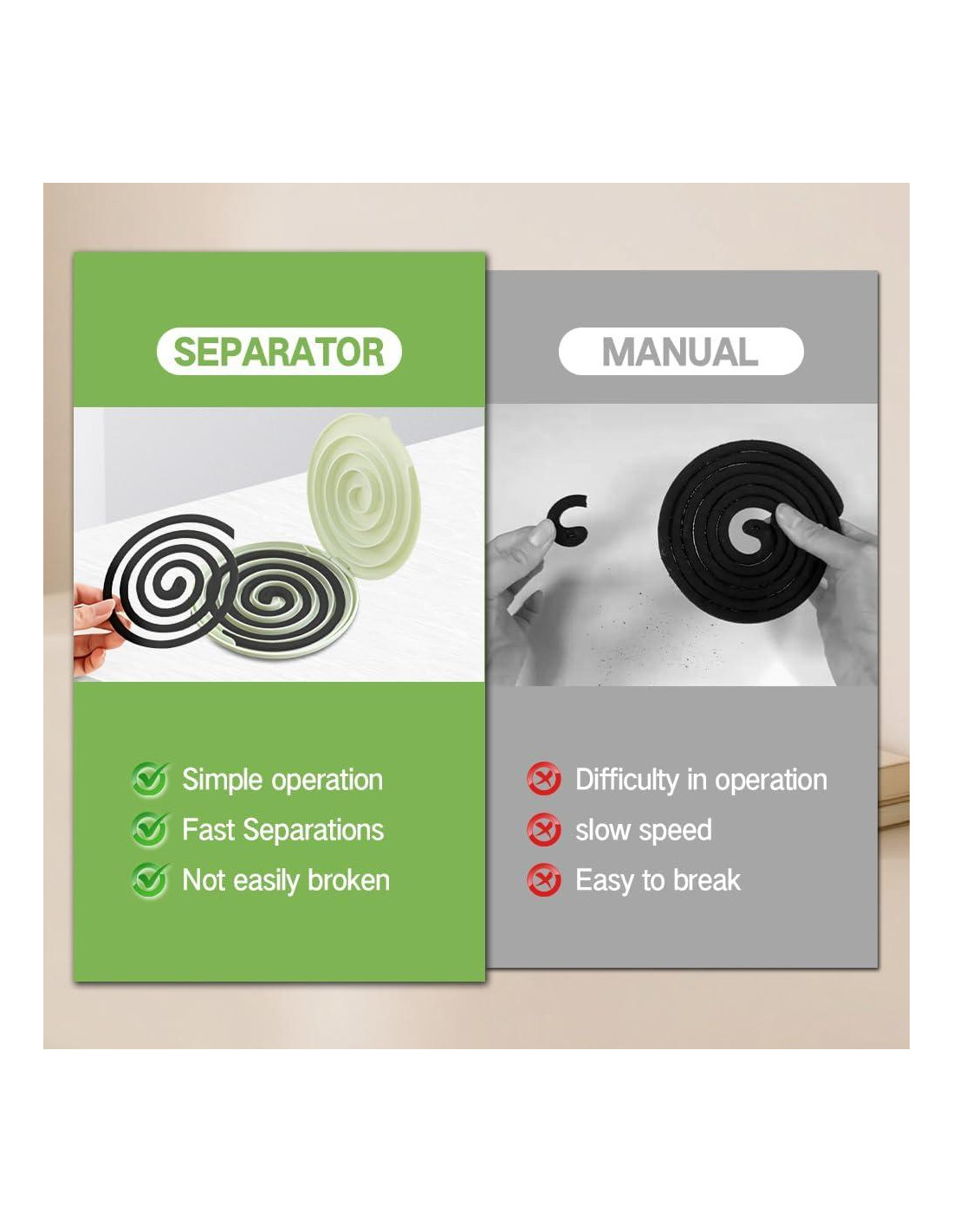 - [Sistema de separación instantánea] Este soporte para espirales de mosquito adopta un diseño de presión, puede separar fácilmente las espirales de mosquito en un segundo, ya no necesita sufrir por espirales de mosquito rotas y desordenadas cuando está acampando o haciendo una barbacoa en el patio trasero, disfrute del buen tiempo (el separador solo se puede usar para espirales de mosquito, no es aplicable a espirales de sándalo)