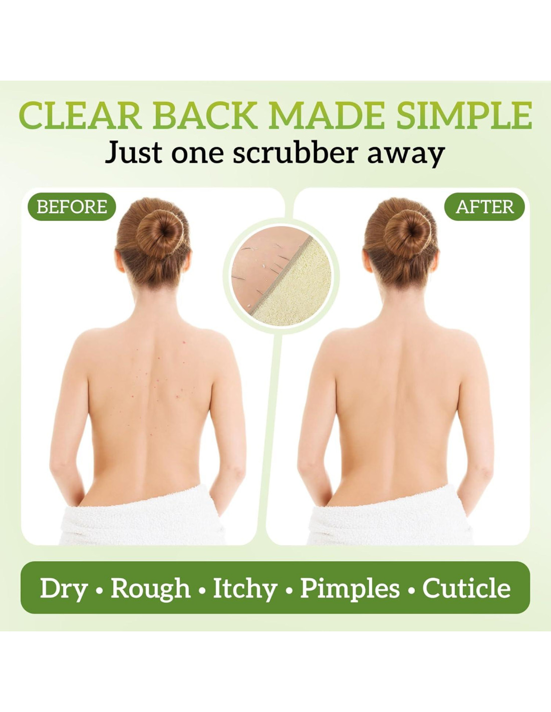 - Esponja de lufa de doble cara que elimina eficazmente la piel seca, áspera y con picazón, limpia los granos y suaviza las cutículas, dejando tu espalda suave y renovada, vibras de spa en casa.