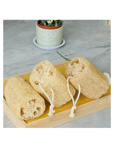 - ESPNJA NATURAL: Esta esponja de lufa está hecha de lufa natural pura. Sin blanqueo, sin aditivos extra. Lo que hacemos para producirla es solo secar y quitar la cáscara.