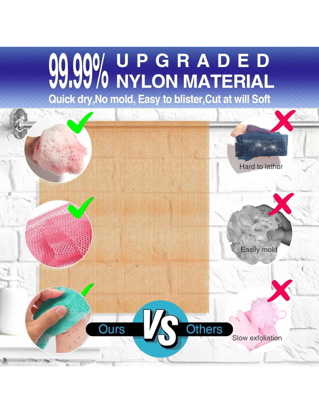 - [Material de Calidad] La esponja está hecha de un nuevo tipo de material de nylon indestructible y confiable, asegurando un uso duradero. A pesar de su ligereza, crea una poderosa espuma de jabón y es apta para lavadora. Su naturaleza porosa permite un secado rápido, mejorando su experiencia de baño.