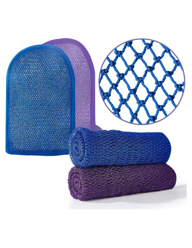 - ESPOJA DE RED AFRICANA AUTÉNTICA: Este conjunto de esponjas de red africanas viene con dos paños exfoliantes y dos guantes exfoliantes en dos colores, perfectos para usar con familiares y seres queridos como un exfoliador corporal natural.