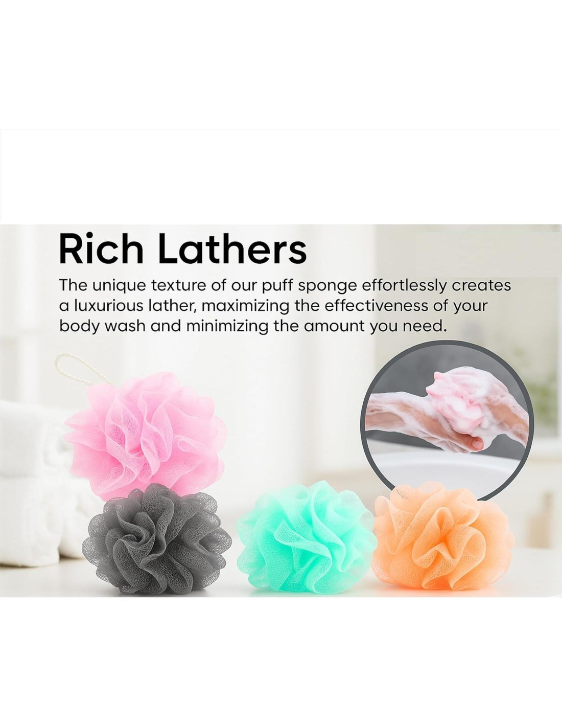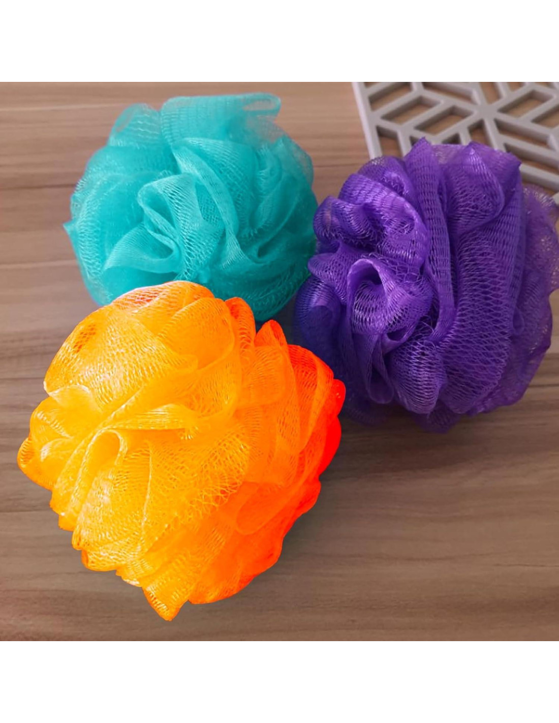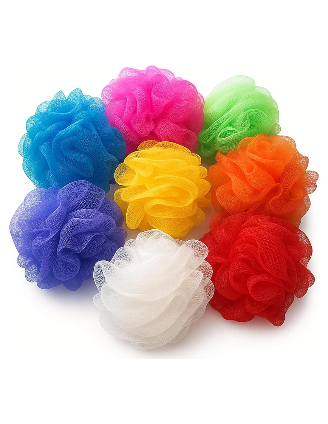 1) Paquete de 8 Lufas de Malla con Colores Variados 2) Material Suave de PE 3) Mejor Opción para Familia y Amigos en casa o de Viaje