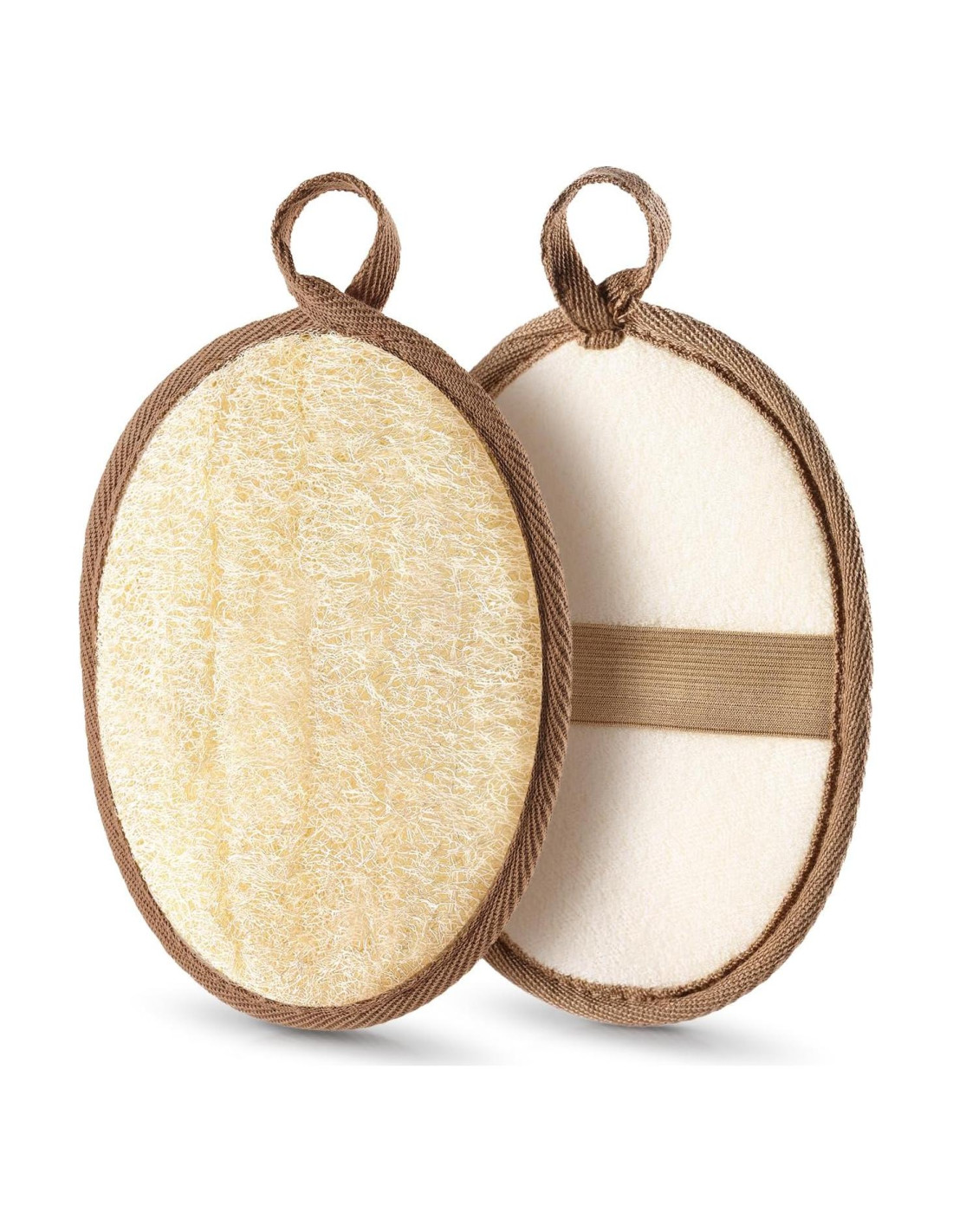 - ESFUMADOR DE BAÑO LIGERAMENTE ABRASIVO La esponja exfoliante de lufa natural deja tu piel revitalizada y más receptiva a lociones e hidratantes. Los lados reversos tienen tela de toalla suave para eliminar aceites corporales, suciedad y desechos.