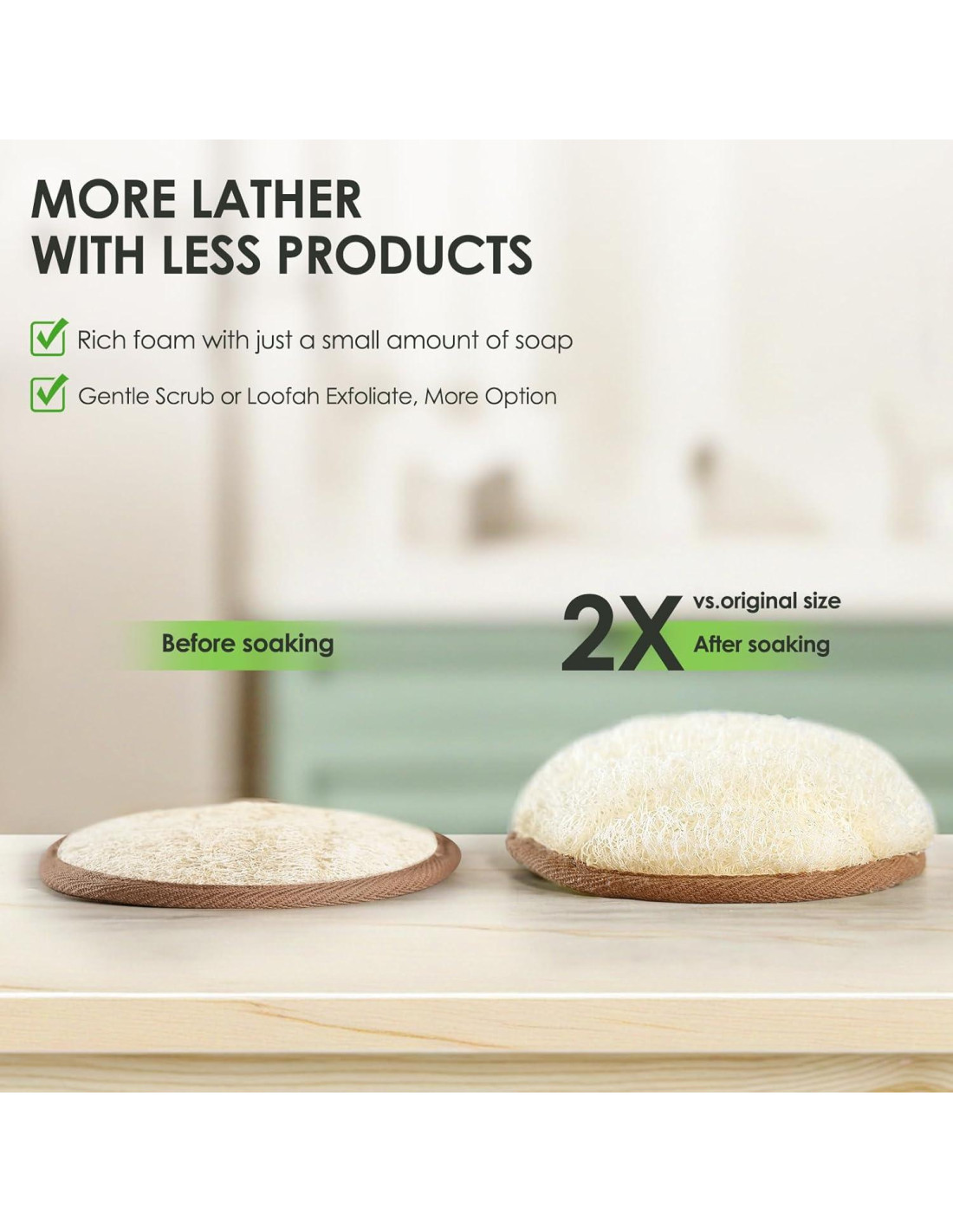 - FÁCIL DE USAR Desenvuelve nuestro paquete de 2 esponjas de baño para mujeres y hombres; Sumerge la lufa exfoliante en agua tibia durante 10 minutos para recuperar su forma y cuélgalas con el mango de algodón para secar; Reemplaza estas esponjas de ducha cada 4 semanas para obtener resultados óptimos.