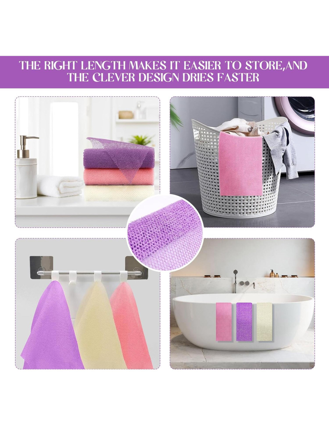- Limpieza Más Efectiva: Los paños exfoliantes son más ásperos que las toallas de baño ordinarias, pero lo suficientemente suaves para la limpieza diaria del cuerpo. Eliminan fácilmente las células muertas de la piel y el aceite, y son adecuados para mujeres y hombres de la mayoría de las edades.