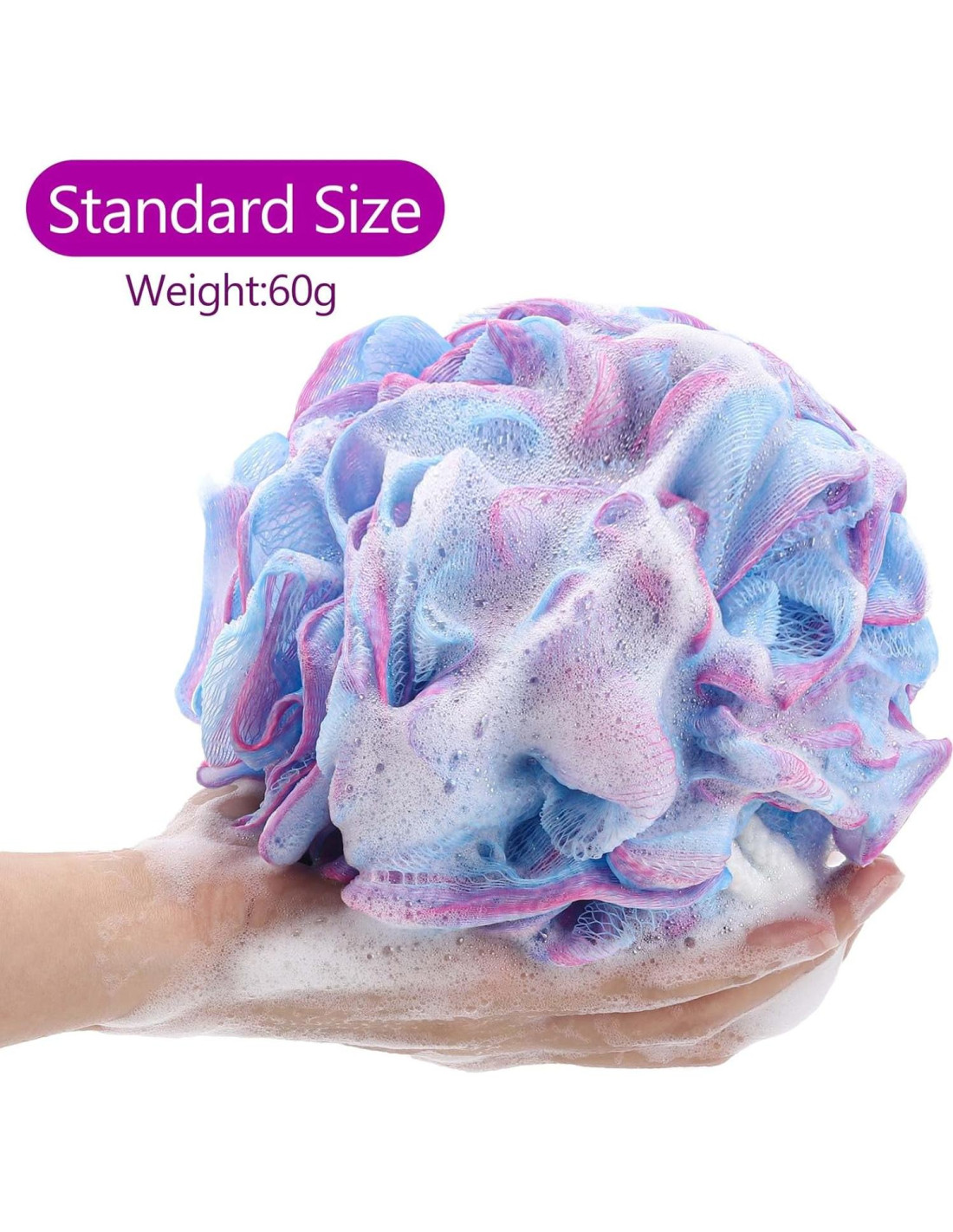 Ayuda a exfoliar suavemente la piel y limpiar los poros de la piel, dejándote con una piel más saludable y suave como la seda. Ideal para duchas y exfoliación. Polietileno de baja densidad y alta presión. No se suelta, bien organizado. Hace espuma agradablemente con poco gel de baño, elimina completamente la suciedad del cuerpo, la piel se siente refrescante y cómoda. Las esponjas de ducha tienen una suave cuerda trenzada que es conveniente para secar y ahorrar espacio, no raspará tu cuerpo. Paquete de 4 en diferentes colores es realmente agradable para compartir entre los miembros de la familia. 2 tamaños y varias combinaciones de colores para que elijas. Humedécelo bajo el agua corriente para suavizar el pouf. Aplica un gel o jabón corporal en la luffa y frótalo para producir espuma. Luego, exfolia suavemente tu piel.