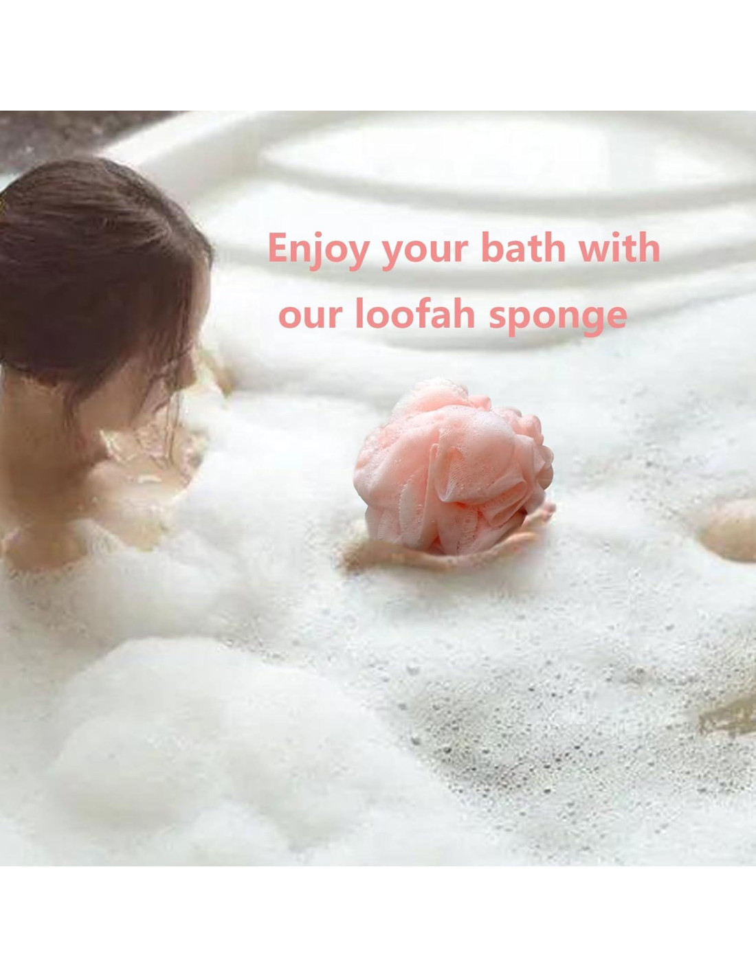 Temporalmente deja de lado la prisa de la vida y permítete volver a la paz y la comodidad. Necesitas un tiempo de baño cómodo. La suave bola de lufa se desliza sobre tu cuerpo con una rica espuma. En este momento, estás relajado y cómodo. La hermosa lufa tiene una malla densa. Solo un poco de gel de ducha puede producir una rica espuma. En comparación con aplicar el gel de ducha con las manos desnudas o usar una toalla áspera para empapar el gel de ducha, ahorras mucho gel de ducha. Ahorra tiempo, molestias y dinero, tu cuerpo puede estar cubierto de espuma en solo unos pocos segundos. Material de alta calidad, exquisita mano de obra. La lufa tiene muy buena resistencia y puede adaptarse a altas temperaturas sin afectar en absoluto el efecto de uso.