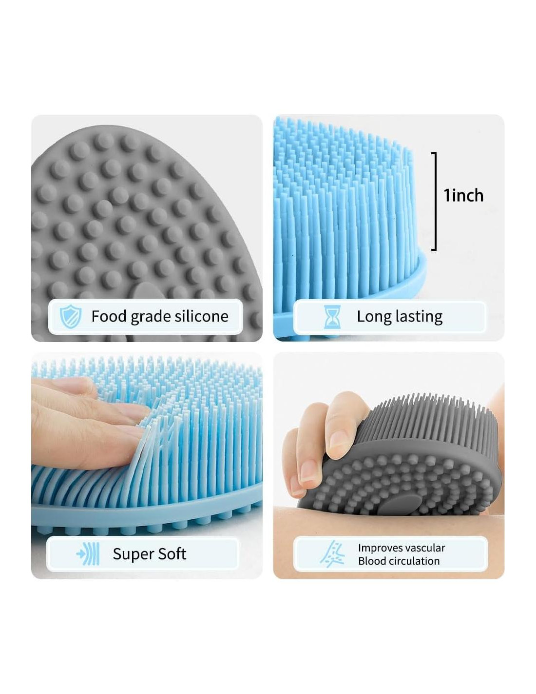 - FUNCIÓN DE EXFOLIACIÓN Y MASAJE: Los exfoliantes corporales de silicona para usar en la ducha, diferentes de los cepillos de ducha ordinarios y guantes exfoliantes y paños exfoliantes, son un buen exfoliante corporal. El cepillo de baño es de doble cara, y un lado puede frotar suavemente para eliminar la piel muerta, dejando la piel suave y delicada, y el otro lado puede masajear el cuerpo y el cuero cabelludo para promover la circulación sanguínea y hacerte sentir más cómodo.