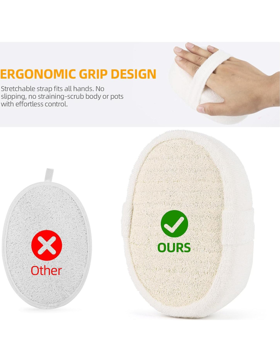 - La correa de mano hace que la lufa de baño sea fácil de sostener, y hace buena espuma con jabón para una experiencia refrescante, similar a un spa.