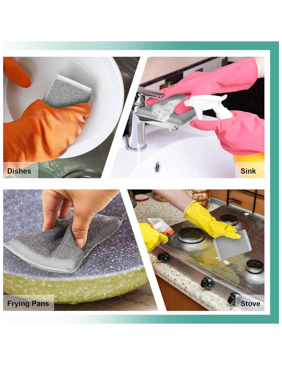 - Limpieza Sin Rayas: la superficie de la esponja estropajo para platos está hecha de tela con alambre de acero inoxidable, proporcionando un fuerte poder de limpieza para eliminar suciedad y manchas de aceite de platos, ollas, tazones, etc.; El material metálico es suave en las superficies y no rayará fácilmente artículos delicados