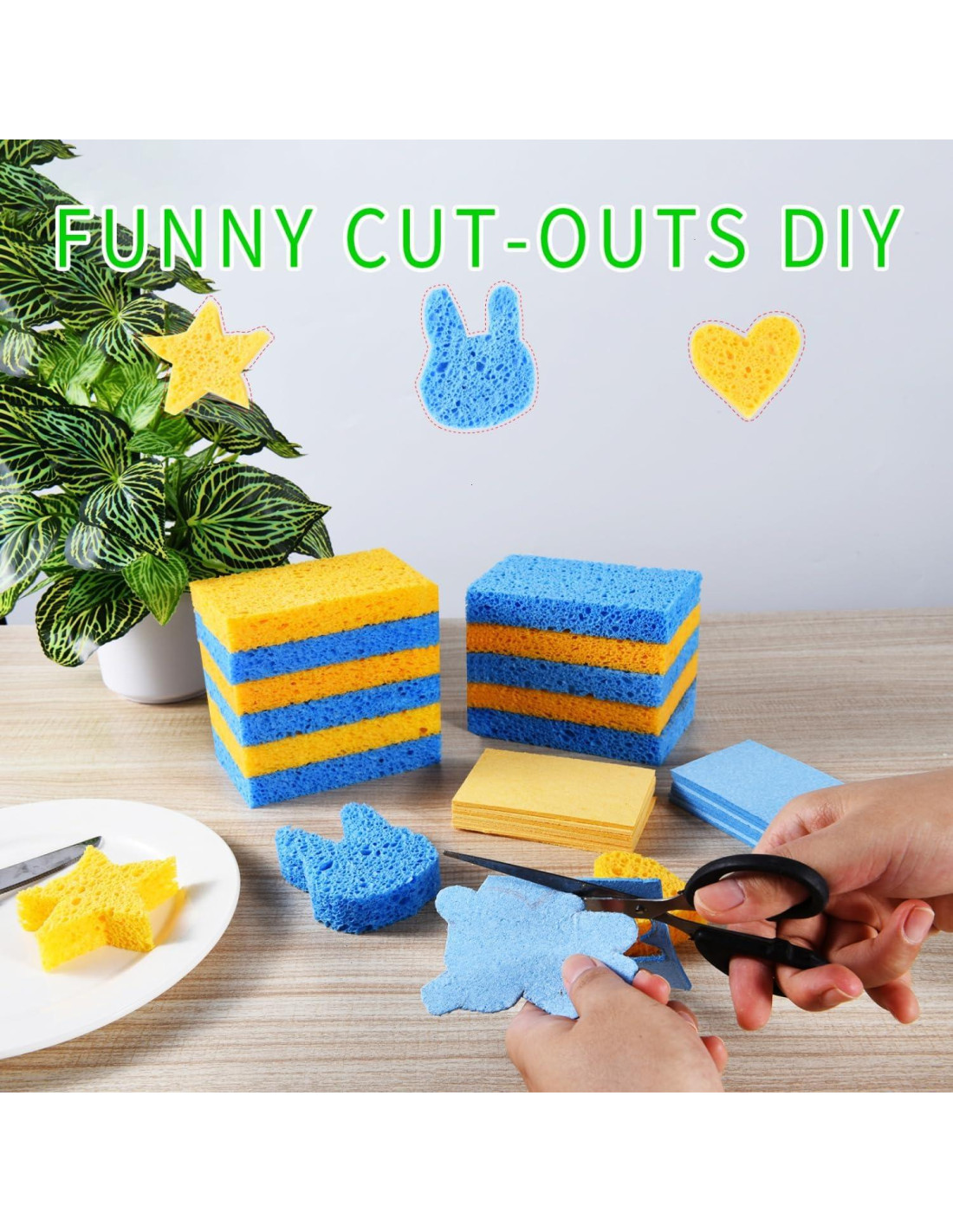 Recibirás 48 piezas de esponja para platos (incluyendo 24 amarillas y 24 azules), las esponjas de diferentes colores para marcar diferentes usos. Las esponjas de celulosa vienen comprimidas en tamaño de tarjeta y puedes cortarlas en cualquier forma linda. Estas esponjas son súper absorbentes y se expanden mágicamente rápido cuando se colocan en agua. Las esponjas comprimidas en forma de tarjeta son fáciles de almacenar y no ocuparán mucho espacio en tus armarios de cocina. Las esponjas reutilizables pueden limpiar fácilmente ollas, platos, mesas, estufas, azulejos, ventanas y pisos.