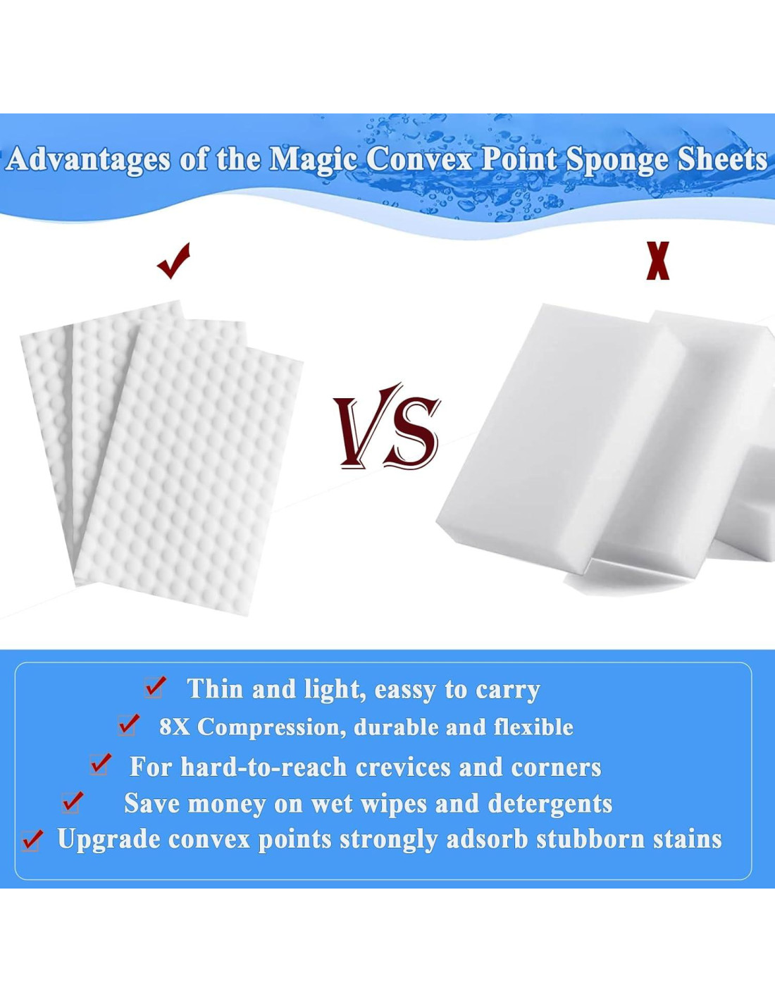 - [Hojas de Esponja Mágica Mejoradas] La tecnología mejorada y la superficie de fricción de punto convexo de las hojas de borrador delgadas mágicas facilitan la limpieza de rincones estrechos y algunos objetos de forma irregular curva. Estas toallitas de borrador son delgadas y flexibles, ideales para limpiar a fondo zócalos, perillas de cocina, grifos, manijas de puertas, rincones de paredes, tostadoras y más.