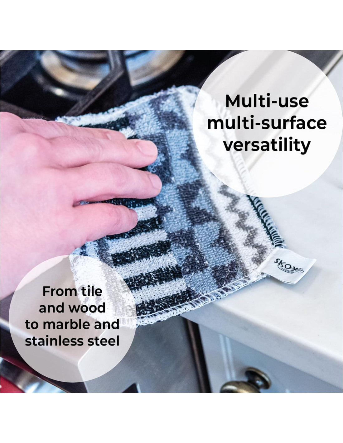 - SEGURO EN LA MAYORÍA DE LAS SUPERFICIES - La versátil Skoy Scrub hace maravillas en la mayoría de las superficies, incluyendo la mayoría de las sartenes antiadherentes, cerámica, vidrio y superficies de cocción. Nuestra esponja de limpieza reutilizable se puede limpiar y usar múltiples veces. Por favor, prueba en superficies delicadas antes de usar.