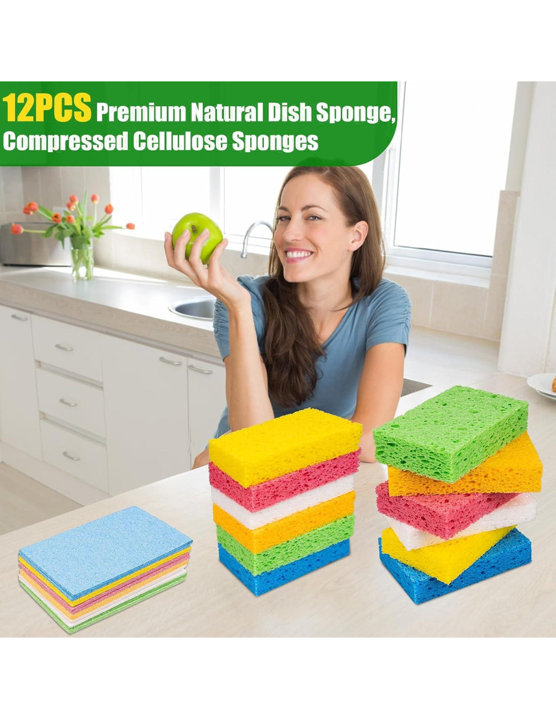 - Paquete de 12 PCS Esponjas de Cocina: Nuestras esponjas de fregar pueden ayudarte a mantener tu cocina y hogar limpios y ordenados, 6 esponjas de plato de color, 2 esponjas de plato de cada color, estado de compresión: 10.59*6.60*0.25cm, después de mojar: 11.43*6.86*2.54cm