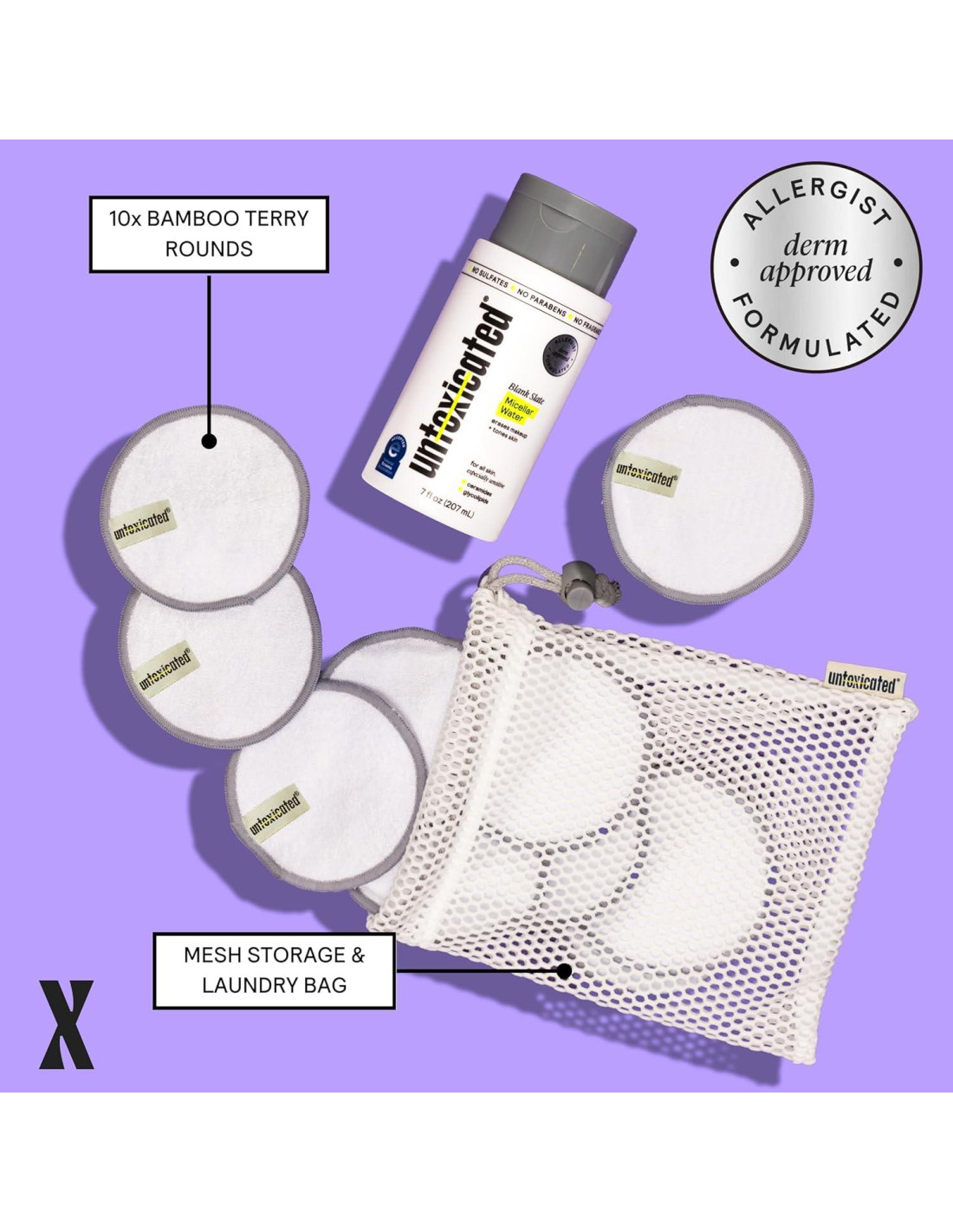 - [DE DOS CAPAS Y ULTRA SUAVE] Rondas de bambú terry de 3" (7.62 cm) que eliminan el maquillaje y aplican cuidado de la piel líquida mientras minimizan la irritación y la interrupción de la barrera de la piel.