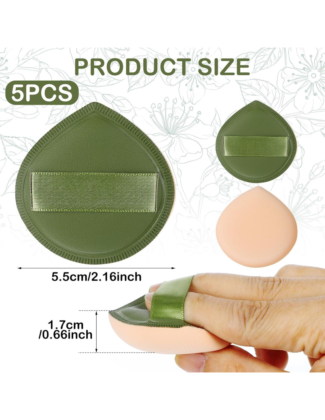 Nombre del producto: Esponjas de maquillaje para la cara Material: esponja + PU Color: esponja verde Peso bruto (g): 25 Tamaño del producto (cm): diámetro 5.5cm/5.51cm, grosor 1.7cm/1.68cm Lista de empaque: 5pcs esponja de base