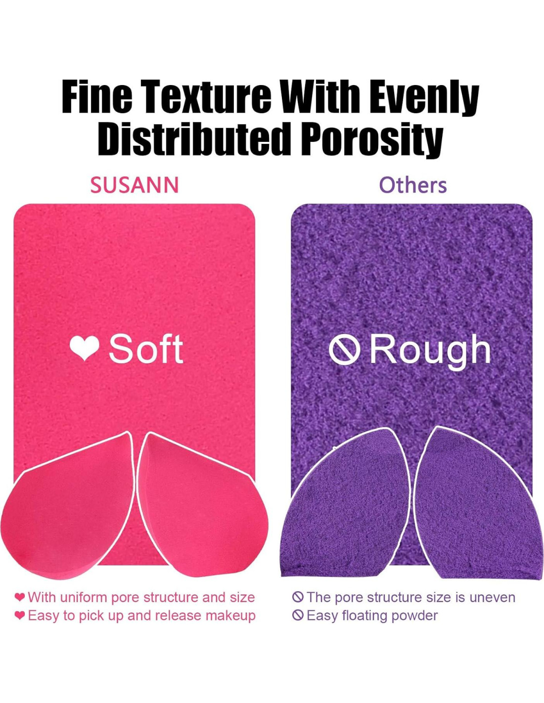 - Juegos de esponjas de mezcla de maquillaje, hechas de material sin látex, hechas de poliuretano hidrofílico americano, lo que asegura que las esponjas de maquillaje sean ultra suaves, sin olor y no alérgicas. Tiene una sensación suave, esponja de belleza bien rebotante, fácil de distinguir.