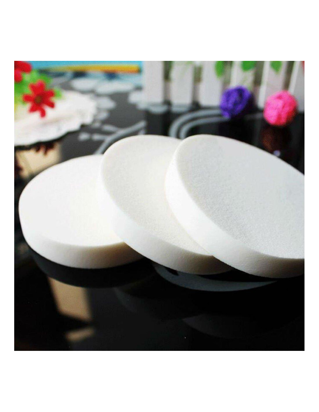 Material: Esponja Suave Estilo: Redonda Tamaño (Aproximado): Diámetro 55mm x Grosor 7mm Color: Blanco Cantidad: 20pcs Especificación: 1> Doble uso para uso húmedo o seco 2> Toque suave, base de maquillaje suave y uniforme es posible 3> Disponible para base líquida, crema o en polvo 4> El puff de polvo ataca la elasticidad apropiadamente 5> Puff de polvo facial es de alta calidad y fácil de usar 6> Material natural es extra suave para la piel 7> Con este puff de polvo esponja, puedes volverte más hermosa. Nota: 1> A veces los productos parecen más grandes o más pequeños en las imágenes, por favor refiérase a nuestra descripción real. 2> Por favor, permita un pequeño error de tamaño debido a la medición manual. Paquete Incluye: 20 x Puff de Polvo Redondo (Blanco)