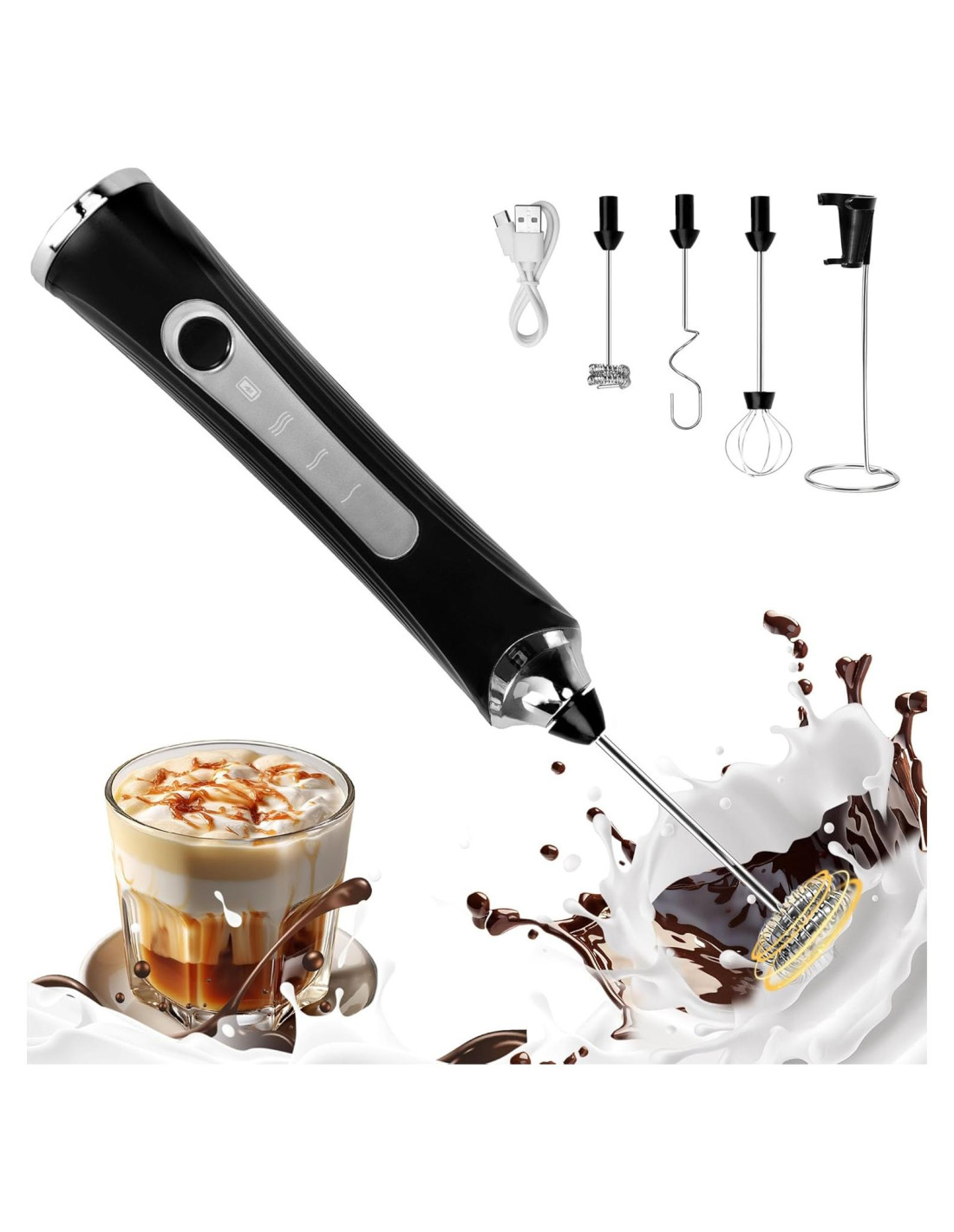 - [Compacto, Elegante y Versátil]: Este espumador de mano está diseñado para la conveniencia. Es ligero, portátil y elegante, perfecto para espumar lattes, matcha, capuchinos y chocolate caliente. También puedes usarlo para mezclar batidos de proteínas, batidos de leche y otras bebidas con facilidad.