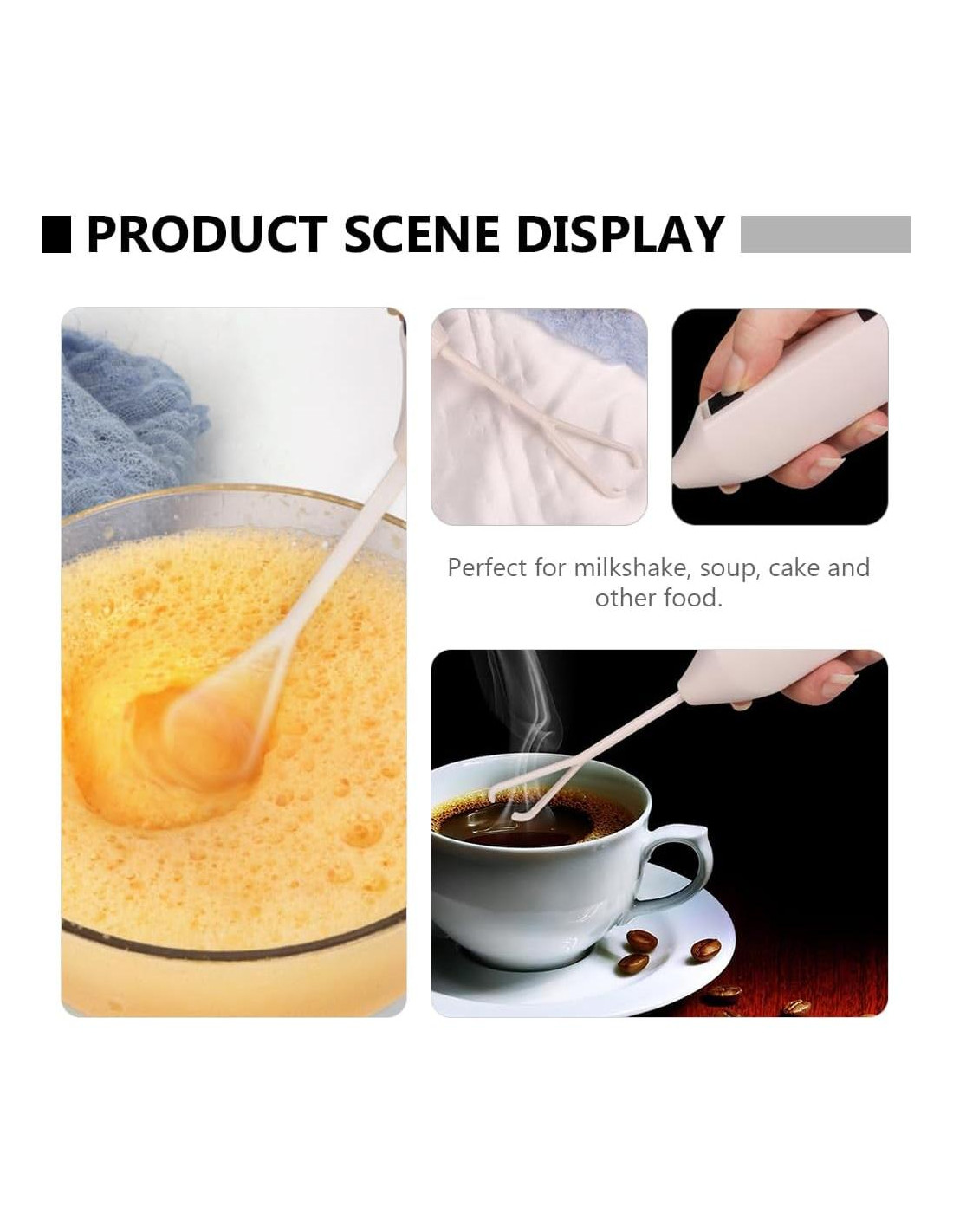 - Herramienta de Cocina Versátil: Este mini mezclador de bebidas también funciona como un batidor de huevos, convirtiéndolo en una herramienta esencial para hornear y cocinar, desde batir crema hasta mezclar harina