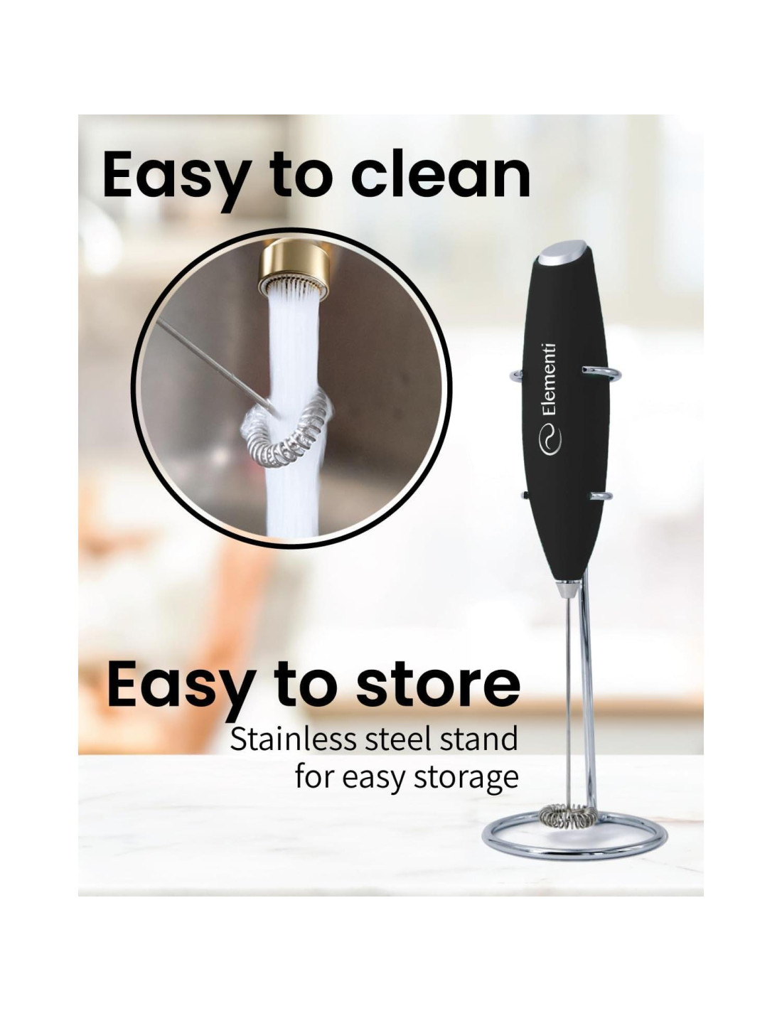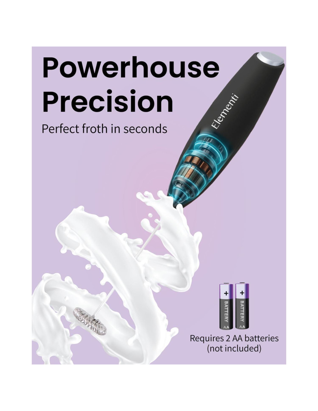 Ya seas un barista profesional o simplemente disfrutes de un capuchino en casa, Elementi está aquí para ayudarte a elevar tu experiencia con el café. Elementi fue fundada por una pareja de entusiastas del café que estaban apasionados por crear la espuma perfecta para sus lattes y capuchinos sin sacrificar todo tu espacio en la encimera. Transforma tus mañanas con los espumadores de leche de Elementi. Crea lattes, capuchinos y más dignos de un café en casa con solo tocar un botón. Impresiona a tus amigos y familiares, y sé tu propio barista con Elementi. ¡Perfecto para los amantes del café y fácil de usar! Cuenta con un batidor de acero inoxidable y un nuevo motor potente para una espuma más cremosa. Espumador de Leche Clásico, Espumador de Leche de Doble Batidor, Ultra Espumador, Espumador de Leche Lite, Espumador de Viaje.