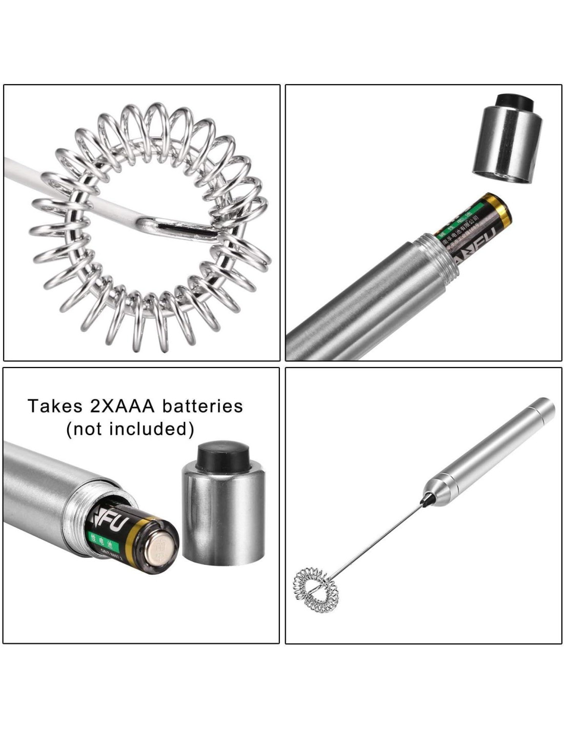 - SILENCIOSO - Espumador para café. Mantiene tu mañana tranquila y pacífica mientras creas tus obras maestras de espumador de leche caliente. Construido con un motor potente pero silencioso. Este lindo espumador de varita bate silenciosamente una rica, suave y delicada espuma para bebidas de café caseras en segundos. Requiere 2 baterías AAA (no incluidas).
