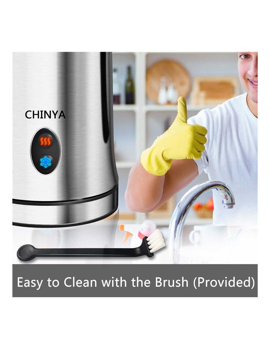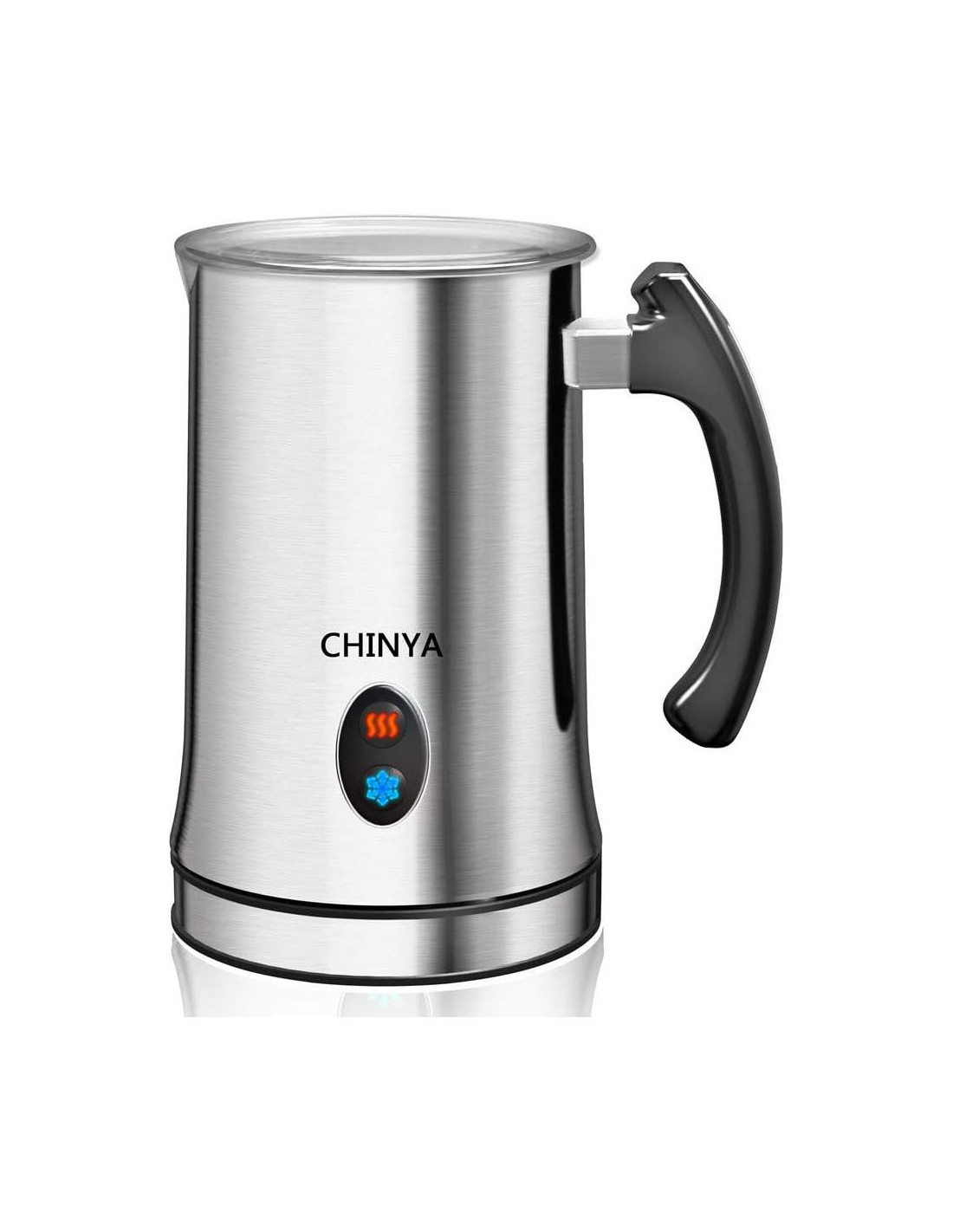 El espumador de leche CHINYA te ofrece 3 opciones para bebidas de café. Siempre que disfrutes de espuma de leche caliente o fría, CHINYA es el mejor espumador de leche para ti y tu familia. El espumador de leche CHINYA viene con dos batidores diferentes. El batidor de anillo negro es para calentar leche y el batidor de resorte es para espumar tanto fría como caliente. El espumador de leche CHINYA calienta la leche a 65+/-5C (140F~158F) lo que puede mantener la nutrición natural de la leche y es el mejor sabor para tus bebidas de café. El espumador de leche CHINYA satisface tus necesidades diarias. Puede hacer 150 ml (5.1 oz) de espuma o calentar 300 ml (10.2 oz) de leche. Cuanto mayor sea el contenido de proteína, más fácil será proporcionar burbujas grandes y espuma cremosa. Contenido de Proteína: Leche de soya > Leche de almendra > Leche de coco > Leche de arroz > Leche de anacardo > Leche de avena. La limpieza es rápida con un recubrimiento seguro y antiadherente que no dejará ningún elemento traza.