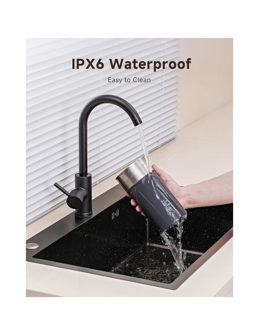 - Diseño Impermeable IPX6 - Fácil de Limpiar, Construido para Durar A diferencia de los espumadores de leche tradicionales, nuestro espumador y vaporizador de leche cuenta con un cuerpo impermeable IPX6 que resiste salpicaduras de agua y derrames accidentales. Enjuaga fácilmente bajo el grifo después de usarlo, sin miedo a cortocircuitos. Es el espumador de café ideal para mañanas ocupadas y cocinas compactas.