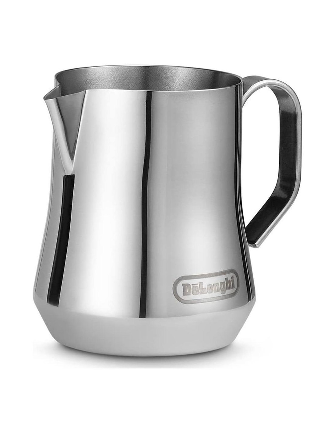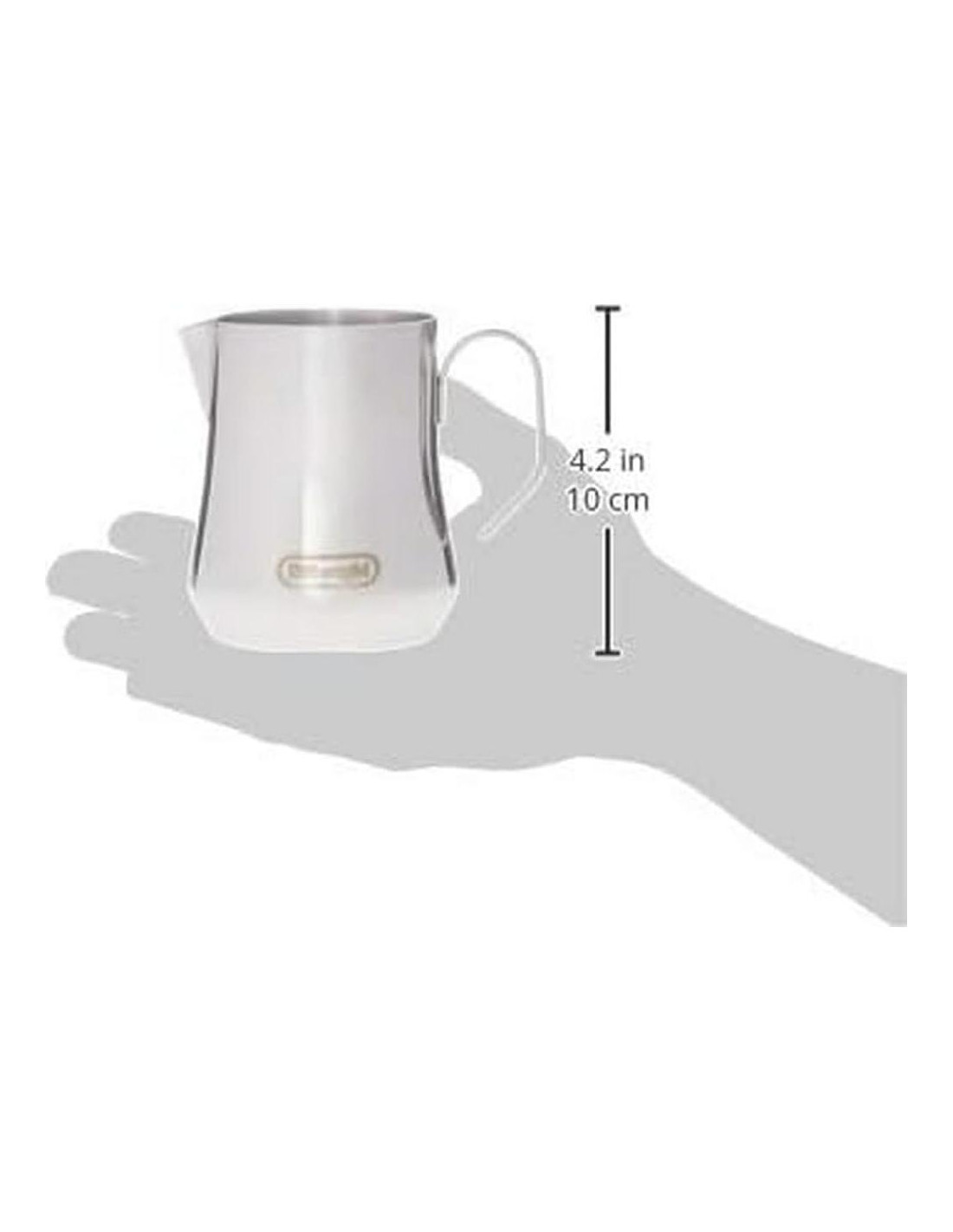 Jarra de acero inoxidable pulido para espumar leche, creando una espuma de leche suave y sedosa y un cappuccino, caffelatte y latte macchiato perfectos