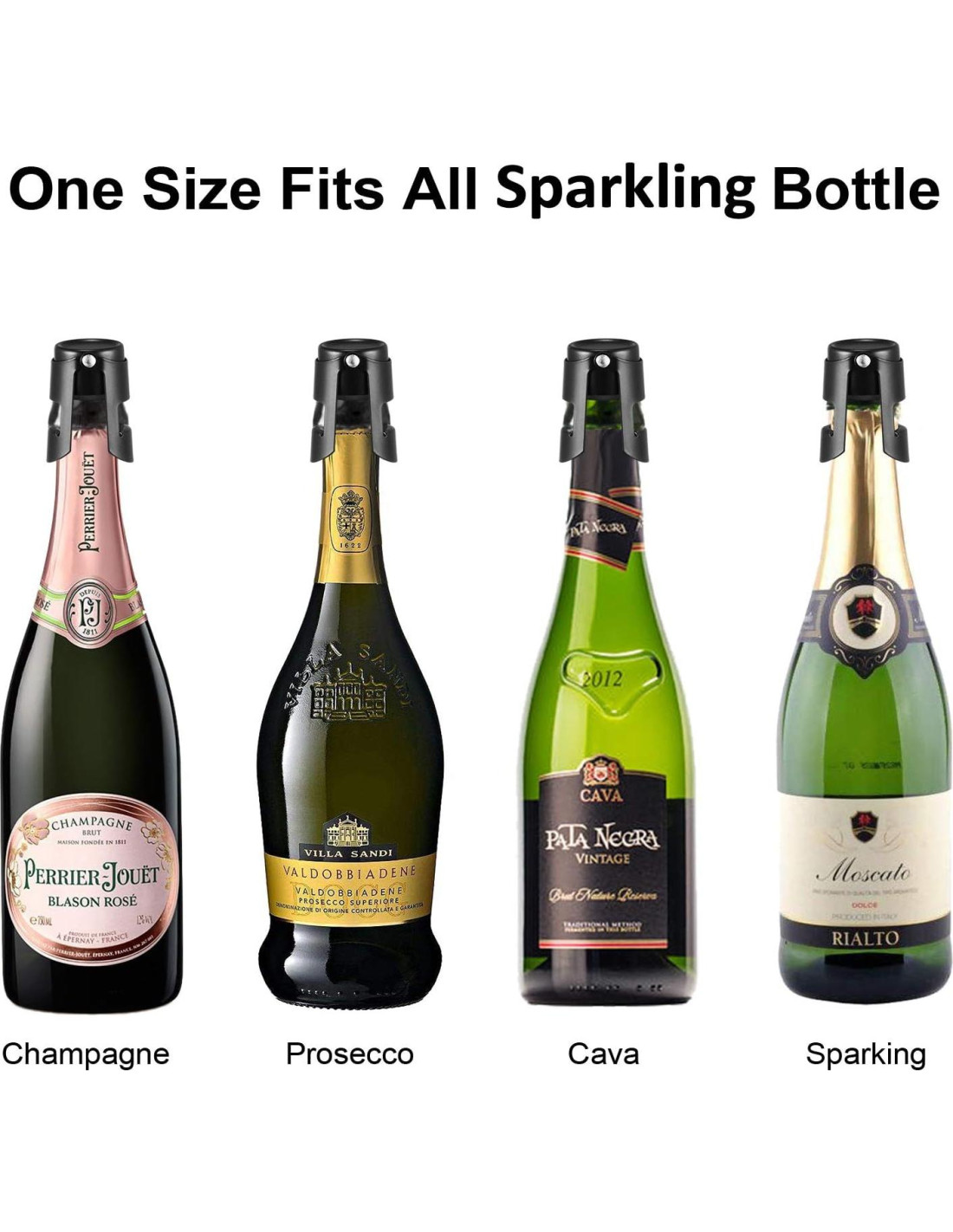 - DISEÑADO PARA ESPUMOSO: Este sellador de champagne se adapta a botellas estándar de 750ml de champagne, prosecco, cava, vino espumoso, algunas botellas de Magnum y muchas botellas grandes de cerveza o sidra. No es adecuado para vino tinto y blanco