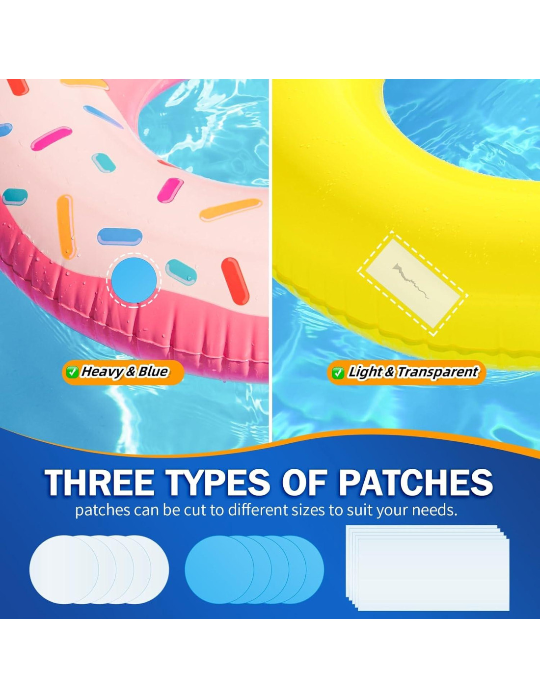 - [Parche de Colchón de Alta Resistencia] - ¡Repara cualquier fuga de colchón de aire o piscina al instante! Nuestro kit de reparación de parches para piscina incluye 15 parches duraderos (redondos azules gruesos, redondos claros y cuadrados) para adaptarse a cualquier agujero, grande o pequeño. ¿No hay un ajuste perfecto? Simplemente recorta al tamaño para un sellado hermético. Lleva este kit de reparación de 80ml para jacuzzis a cualquier lugar. Compacto, ligero y listo para arreglar fugas rápidamente, ¡así que nunca te pierdas un momento de diversión!
