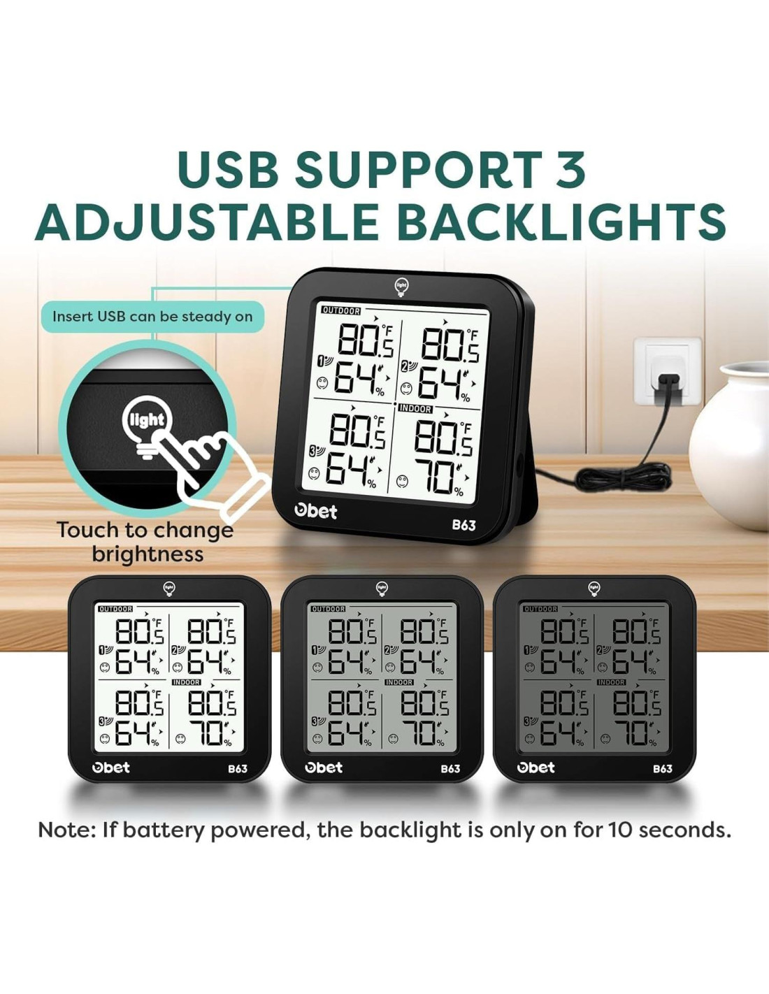 - Brillo Ajustable: El termómetro exterior es simple de configurar y fácil de leer. Se puede configurar para estar siempre encendido y ajustar 3 tipos de brillo alto-bajo-apagado cuando el cable USB está conectado. Pero con energía de batería, la retroiluminación solo está encendida durante 10 segundos.
