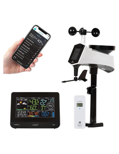 La Estación Meteorológica Profesional Inalámbrica de La Crosse Technology ofrece toda la información meteorológica que necesitas para asegurarte de que la imprevisibilidad de la Madre Naturaleza no arruine tu día. Los iconos de pronóstico dinámico en color, con follaje estacional cambiante, muestran cómo será el clima durante el día. Junto con tu información personal, actualizada al minuto sobre viento, lluvia y temperatura y humedad interior/exterior, sabes lo que está sucediendo dentro y fuera de tu hogar, proporcionándote la información para tomar la decisión de ajustar tu termostato, ponerte tu chaqueta o incluso monitorear la lluvia para saber cuándo es necesario regar tu jardín. Al elegir usar la función conectable, ahora abres tu estación a las características mejoradas, que incluyen transmisión de datos meteorológicos proporcionando a tu estación información de pronóstico más detallada, incluyendo las máximas y mínimas del día, probabilidad de precipitación, así como 8 iconos de pronóstico adicionales para mantenerte al día con el clima que se avecina.