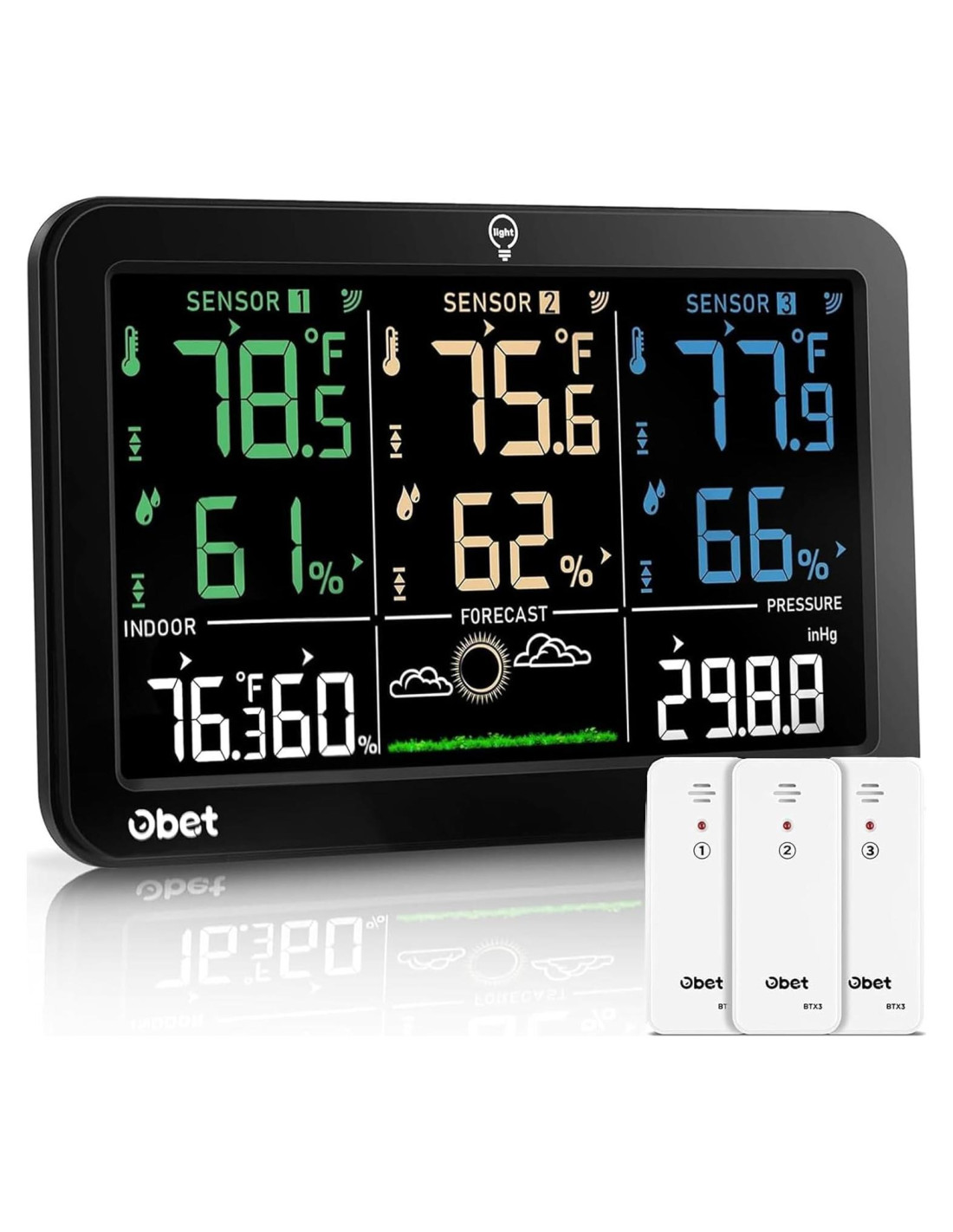 - Estación Meteorológica Multifuncional: Pantalla digital color de 7.87 pulgadas termómetro inalámbrico muestra claramente la temperatura y humedad interior y exterior, el clima y la presión del aire, alarmas de temperatura y humedad. Cuando la temperatura o la humedad superan el valor preestablecido, te alertará sobre cambios ambientales.