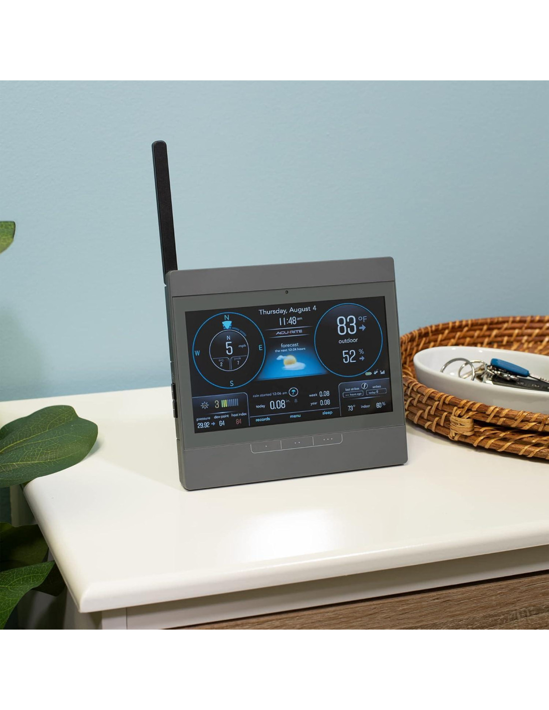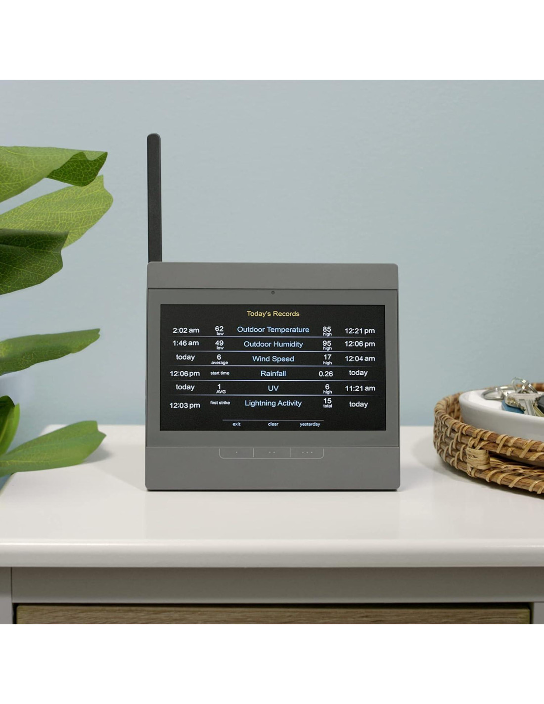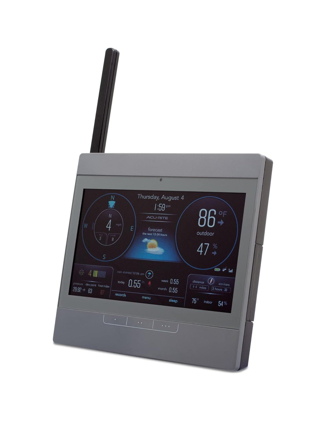 - Condiciones Meteorológicas en Tiempo Real: Cuando se utiliza con un AcuRite Atlas, que se vende por separado, rastrea temperatura, humedad, velocidad del viento, dirección del viento, presión barométrica, totales de lluvia e índice UV en una pantalla de alta definición
